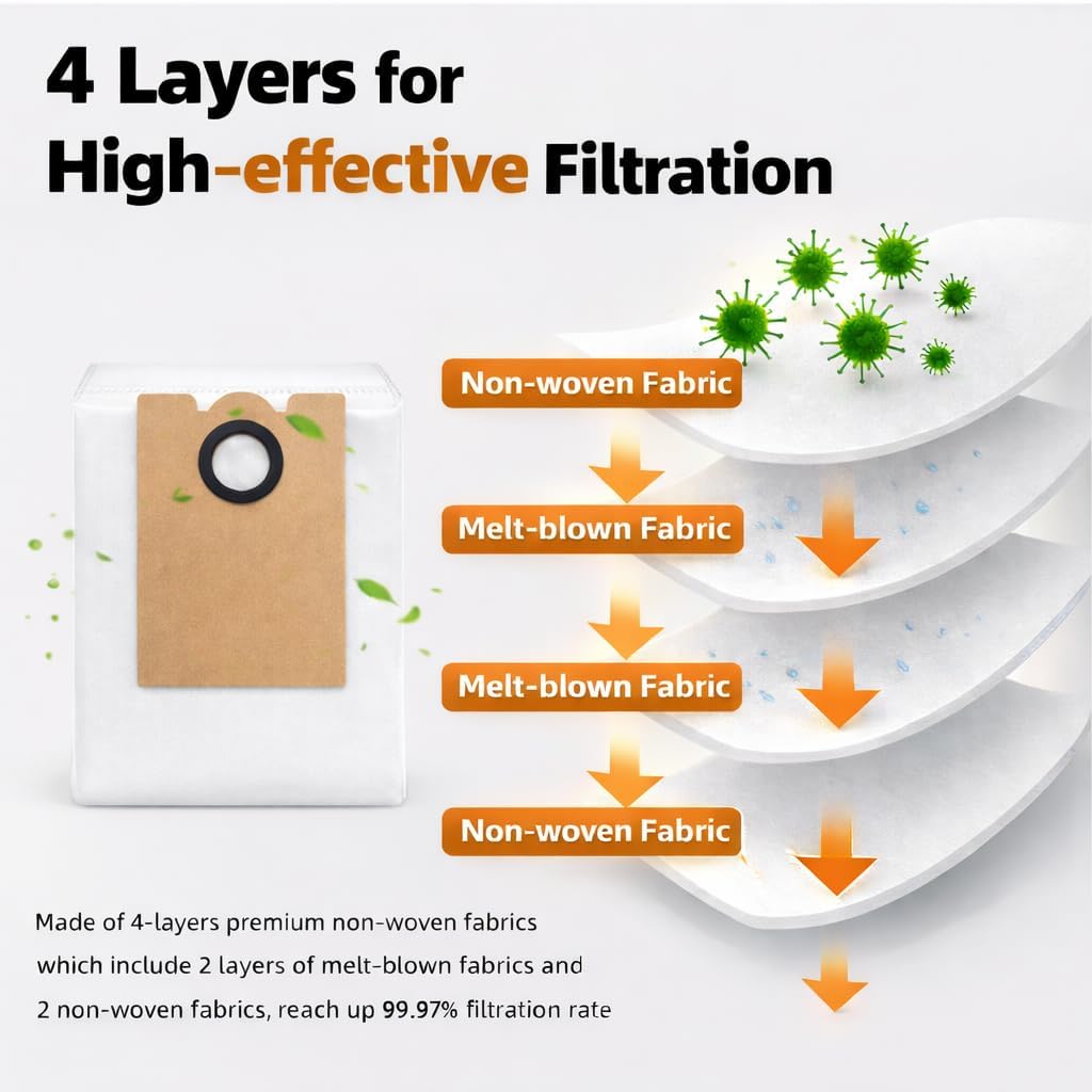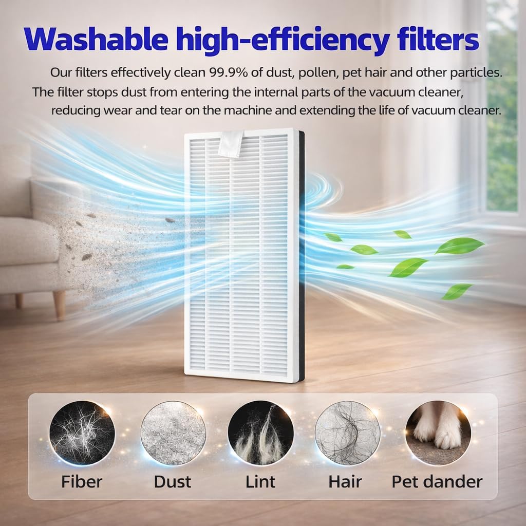[Premium Quality & Performance] – The roller brush and side brushes feature durable, soft bristles that are gentle on floors while effectively lifting dust and debris from carpets and crevices. The high-efficiency HEPA filters capture up to 99% of dust, hair, and particles as small as 0.3 microns—ideal for homes with pets.
