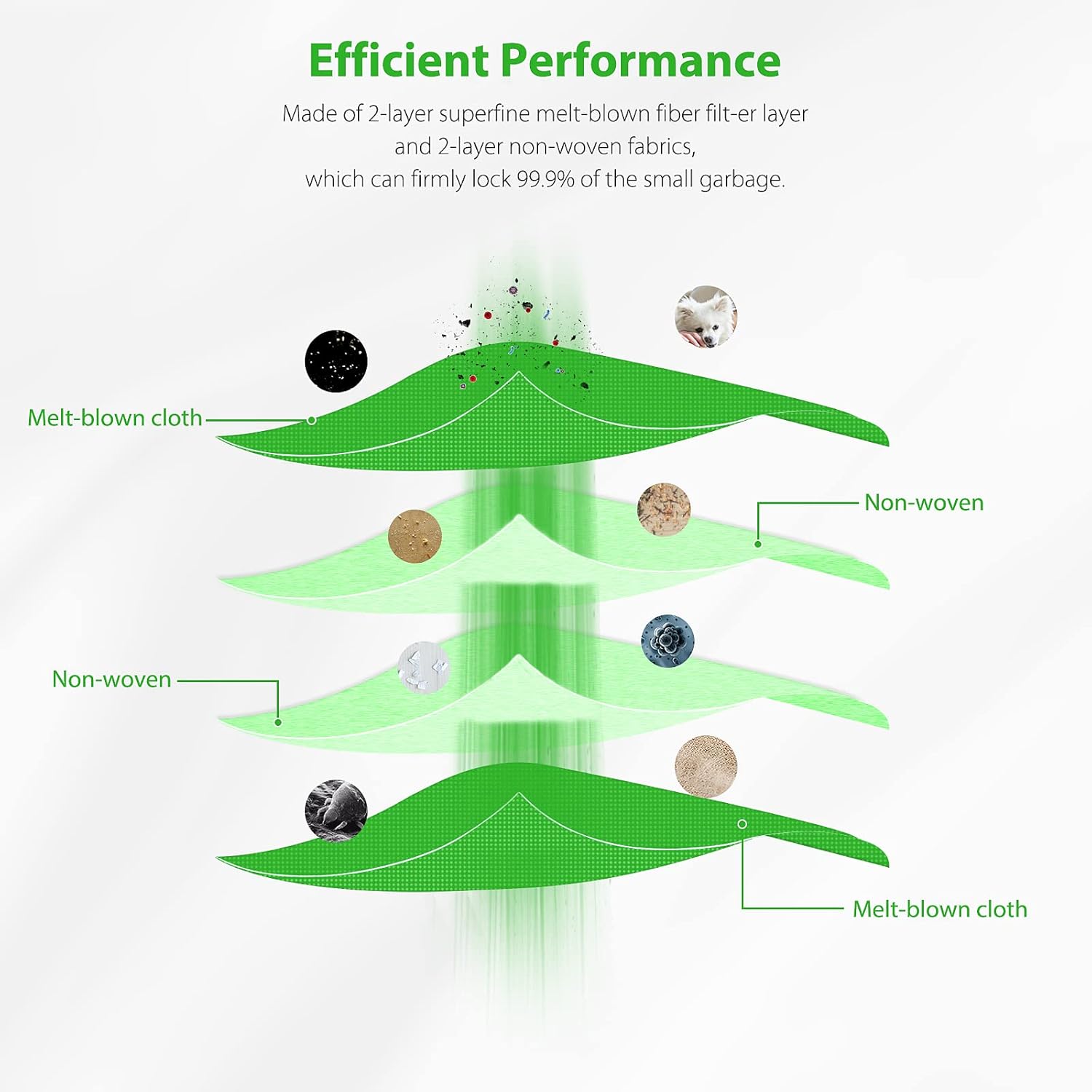 Our vacuum bags are made of excellent PP material and precise non-woven fabric that effectively blocks over 99.9% dust and 0.3-micron particles and other debris.The vacuum bag has a strong seal, effectively reducing the risk of leakage and suppressing dust, ensuring that particles drawn in by the vacuum bag are not easily re-released into the air.