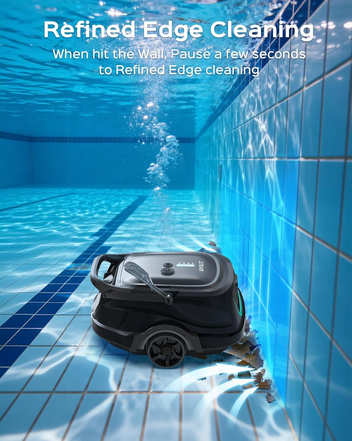 Unmatched Suction Performance: This cordless robotic pool cleaner features a newly upgraded high-suction dual-motor system delivering 2140 gallons per hour (GPH). Whether tackling dust particles or leaf debris, this automatic pool vacuum cleans swiftly and thoroughly—effortlessly maintaining crystal-clear water with minimal effort.