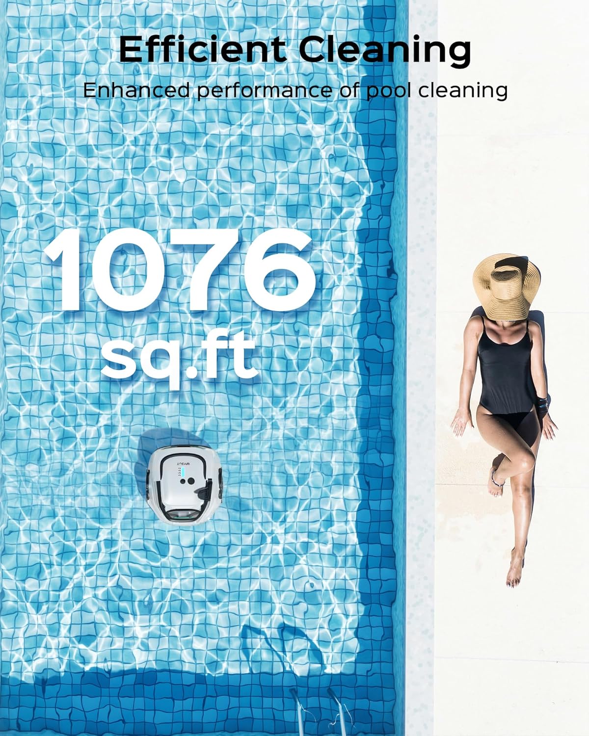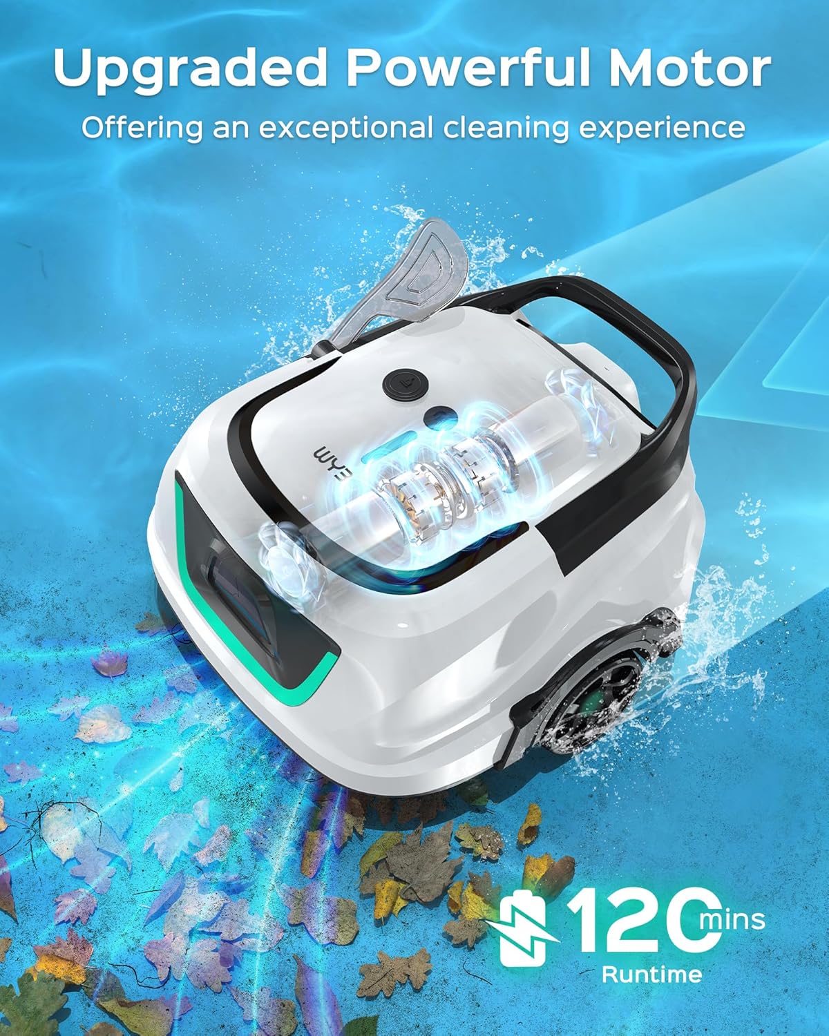 Unmatched Suction Performance: This cordless robotic pool cleaner features a newly upgraded high-suction dual-motor system delivering 2140 gallons per hour (GPH). Whether tackling dust particles or leaf debris, this automatic pool vacuum cleans swiftly and thoroughly—effortlessly maintaining crystal-clear water with minimal effort.