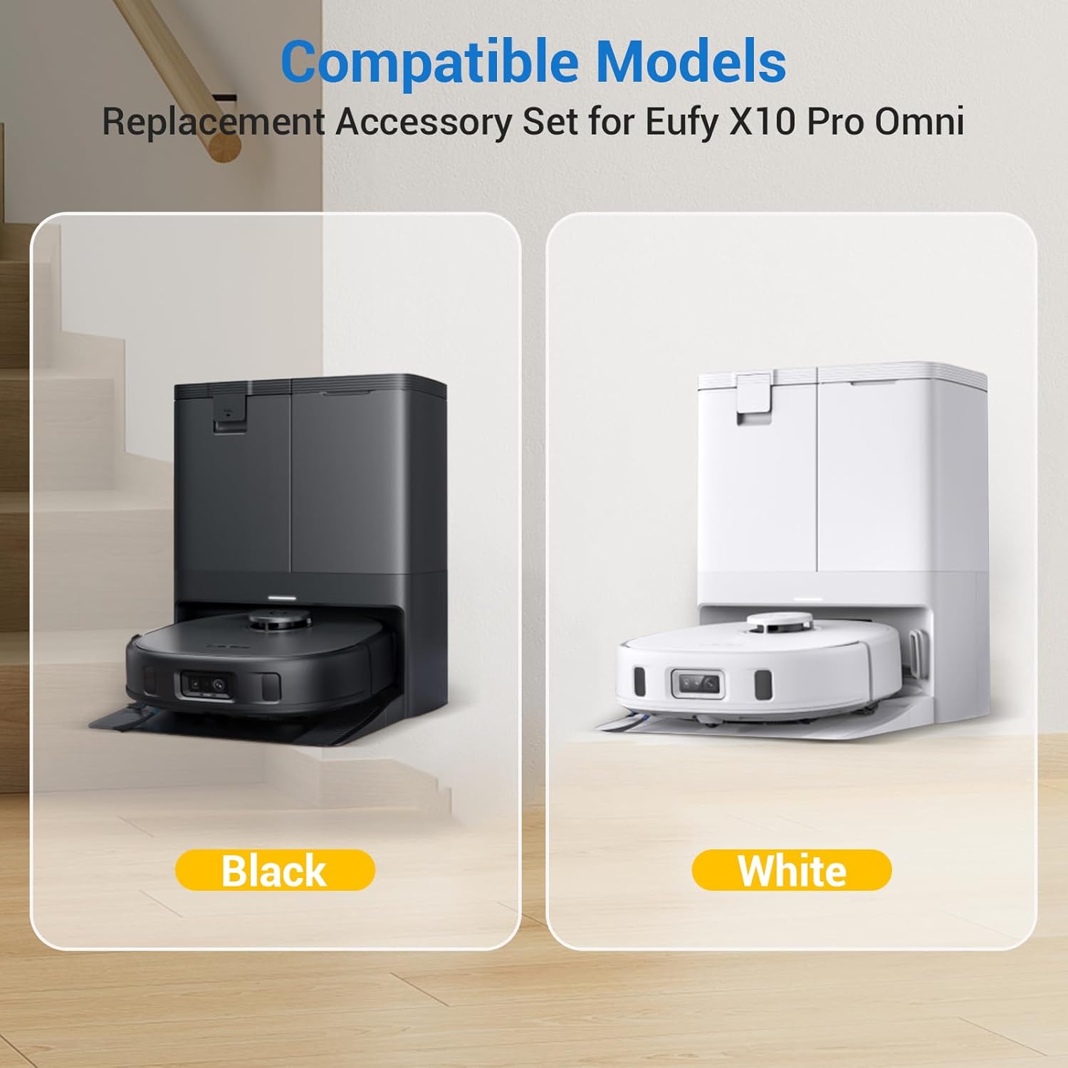 【Compatible models】Replacement Parts Accessories Compatible with eufy X10 Pro Omni Vacuum Mop+Self-Clean base Series Vacuum Cleaners with 1 Roller Brush, 4 Hepa Filters 4 Mop Pads 4 Side Brush 6 Dust Bags 1 Screwdriver 1 Clean tool. (please check your vacuum cleaner model before purchase).not fits for other models.