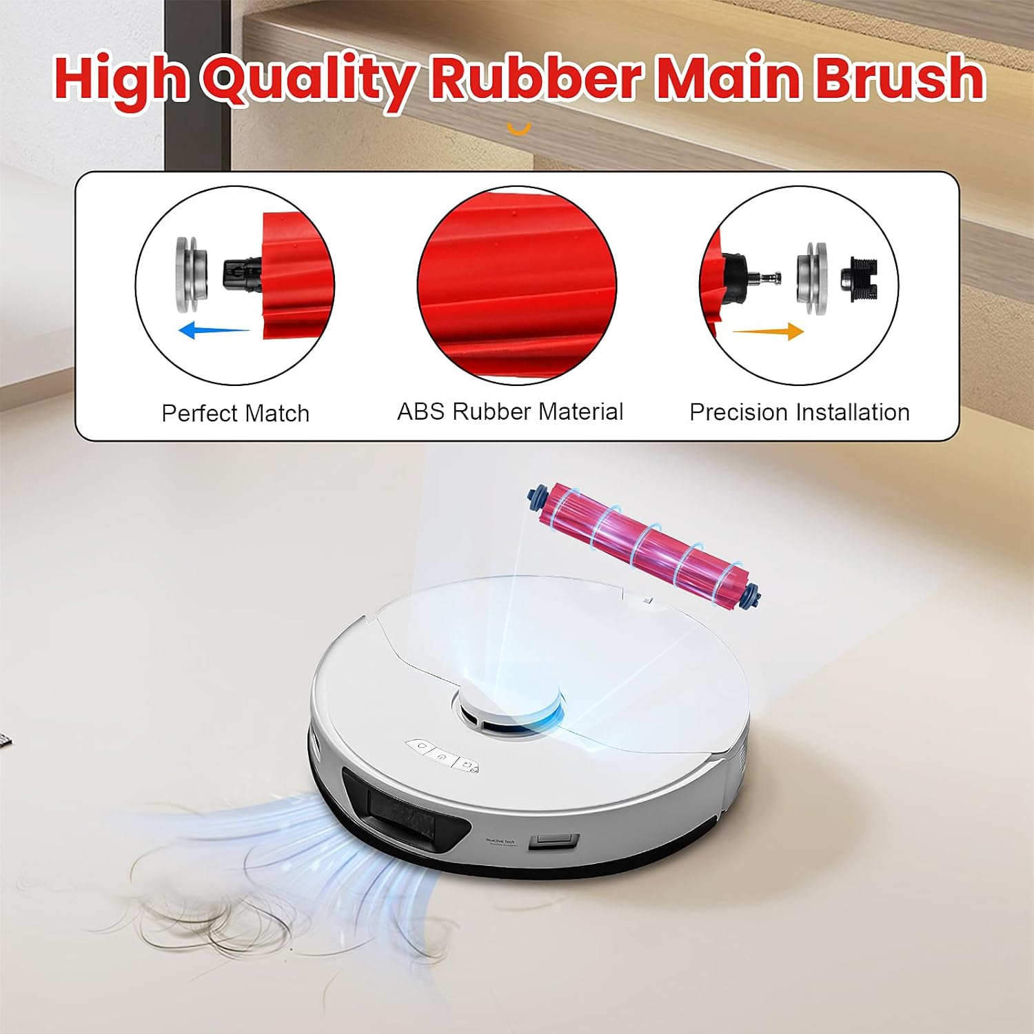 👍【Rubber Main Side Brush】: The main roller brush and side brushe are made of High-Quality ABS rubber material, soft and wear-resistant, can thoroughly removes dust and debris deeply into corners and edges without causing damage to your floor.