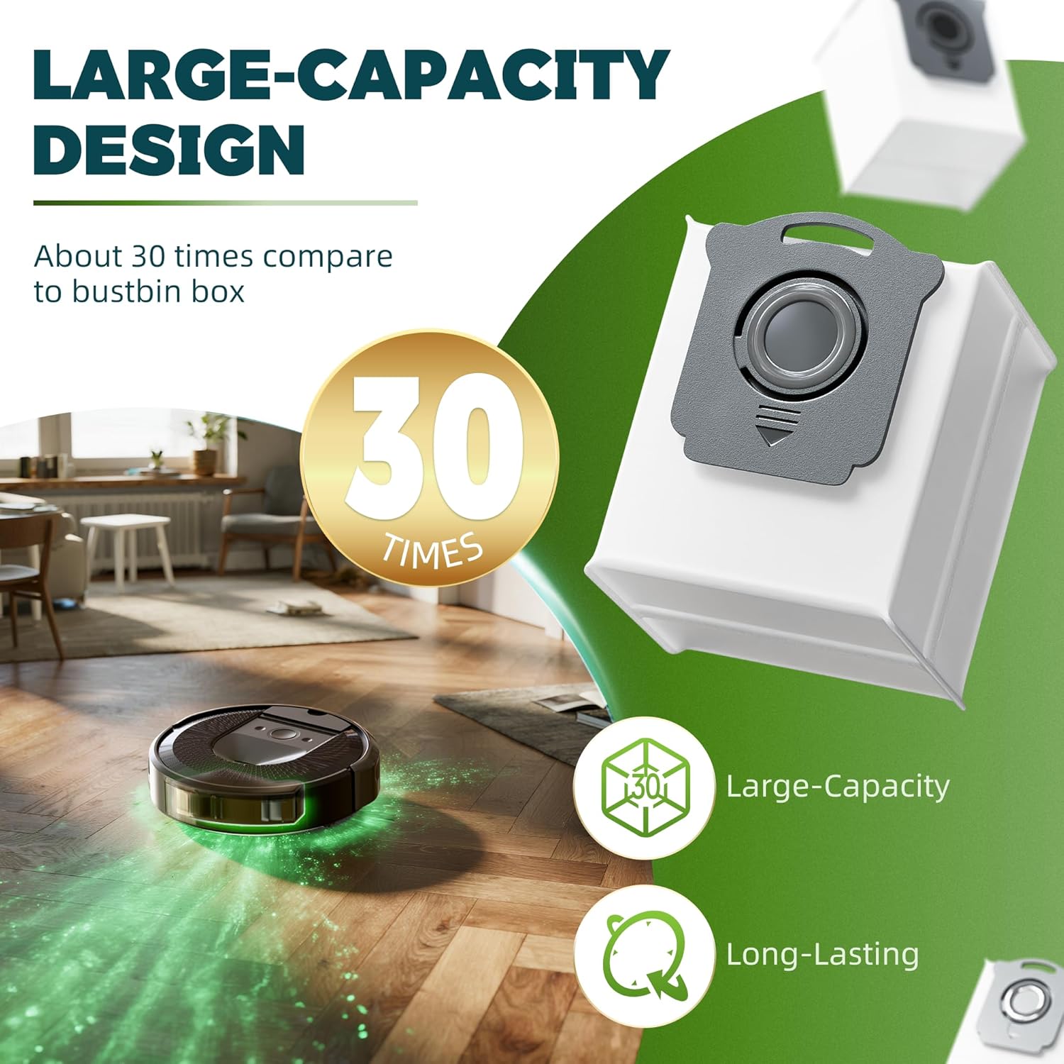 【Large Capacity】 YCWARMXX vacuum bags compatible with roomba vacuum bags is installed on auto-empty station of vacuum cleaner. Each dirt bag holds 30 boxes of dirt and debris, Enjoy true hands-free convenience — no more constant changing or second-guessing with our self-sealing bags