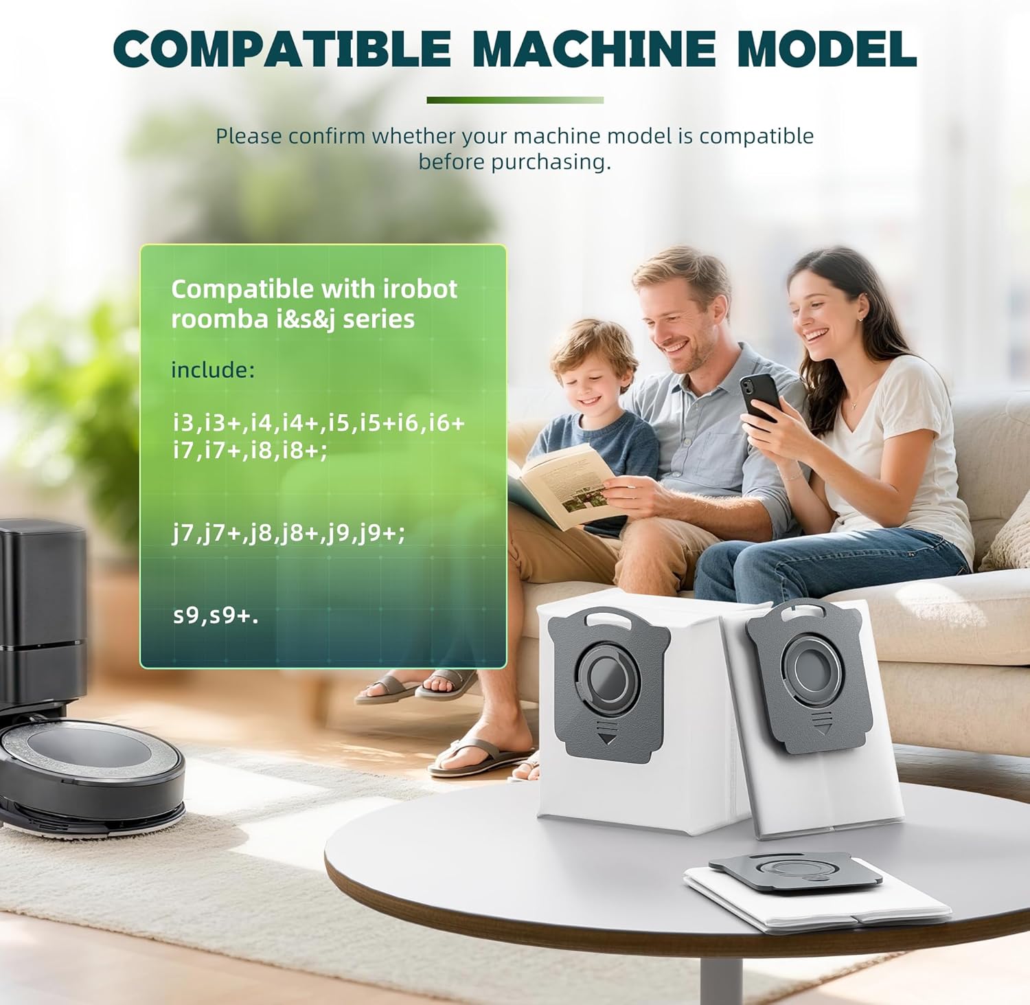 【COMPATIBLE MODELS】 The vacuum bags replacement Compatible with Roomba i, s, j and Essential Series i1 i1+, i3 i3+ (3550), i4 i4+ (4552), i6 i6+ (6550), i7 i7+ (7550), j6 j6+,j7 j7+ (7550), i8 i8 + (8550) s9 s9+ (9550), Essential Q0520, Y0540, Combo j9+, Combo 10 Max, 105/104 Combo, 105 Vac, Plus 504 Vac, Max 705 Vac all clean base automatic decontamination models. Item # 4640235