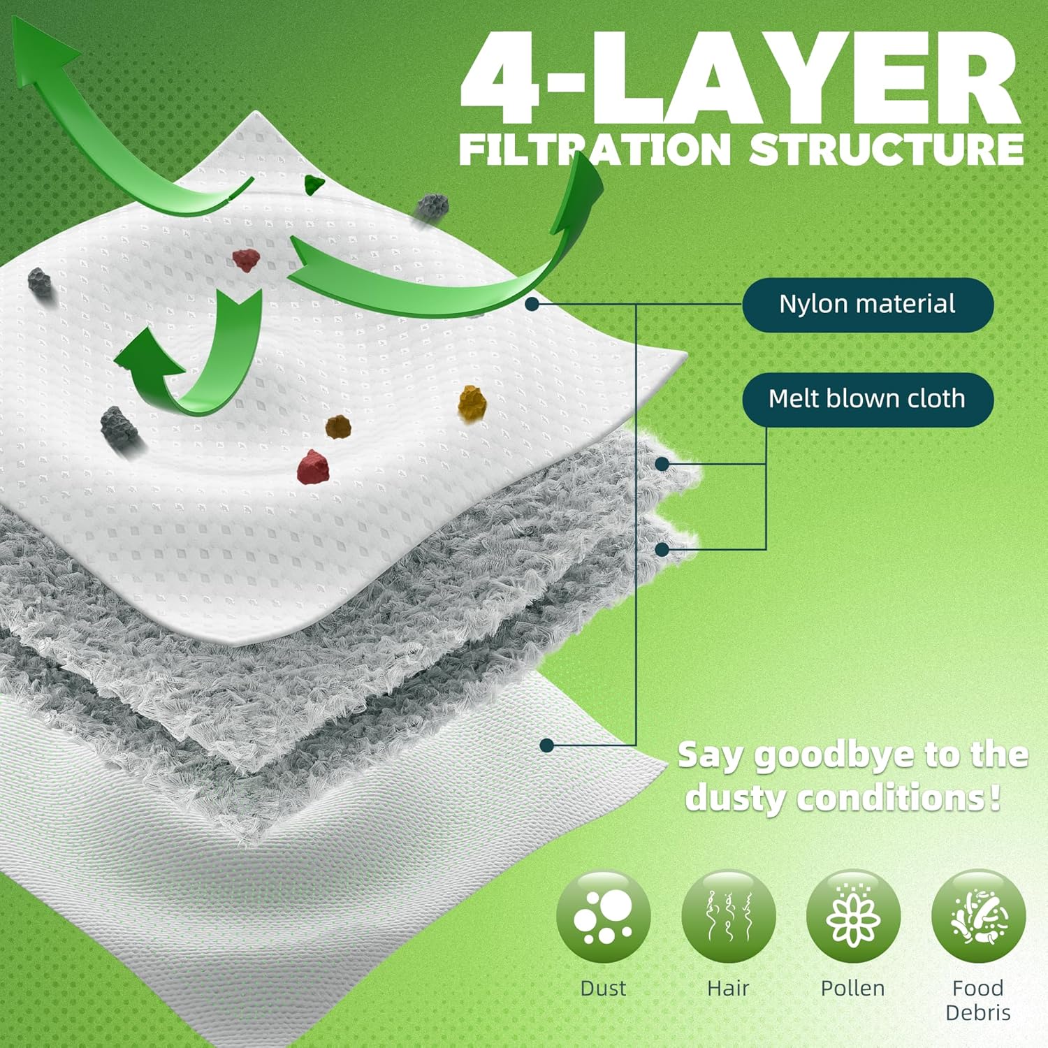 【SUPERB CRAFTS】 Our dirt disposal bags replacement compatible with roomba vacuum bags is designed with a high-efficiency filtration system (1. Non-woven fabric can block the leakage of coarse particles 2. Melt-Blown Layer enables strong electrostatic adsorption, effectively capturing fine particles down to sub-micron sizes). The redundant structure provides effective containment against leakage of the bag’s contents