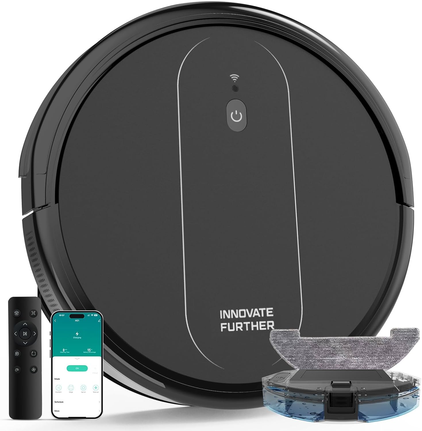 ➍【INFRARED SENSORS & SMART CONTROL】: Infrared sensors for object detection and distance measurement, reducing collisions and wear. Detects stairs to prevent falls and easily climbs carpets up to 18 mm. Schedule cleaning via the app. Clean your home anytime, anywhere with ease. (Note: 2.4GHz Wi-Fi only.)