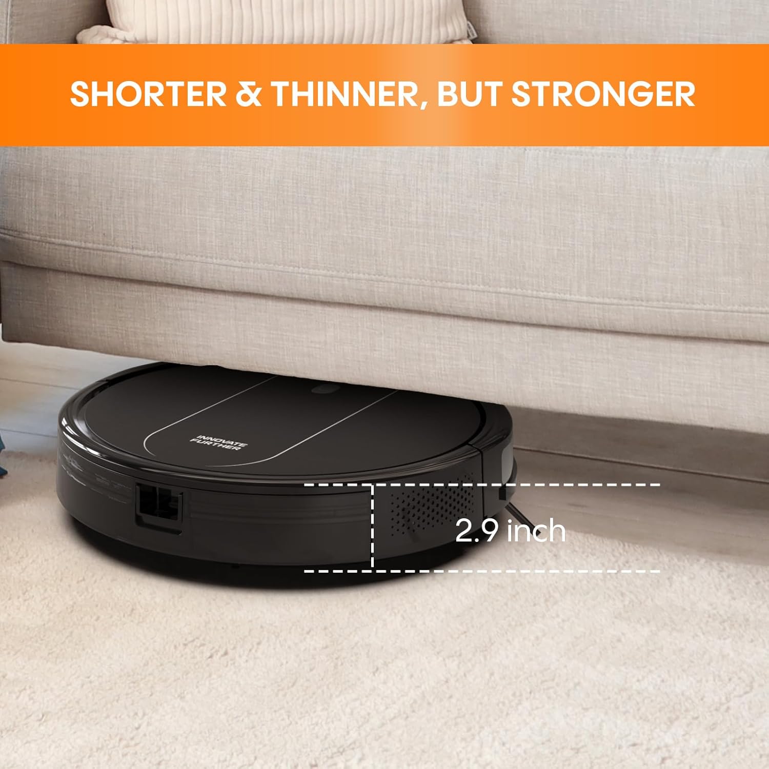 ➊【NEW ROBOT VACUUM】: Side Brushes sweeping, vacuuming, and mopping all in one. Our H21 robotic vacuum features a Max strong suction with a 2.9-inch slimmer body height. Allows it to go under the furniture for all sweeping and vacuuming. Loading up the mopping device, it can mop the hard floor or wooden floor at the same time.