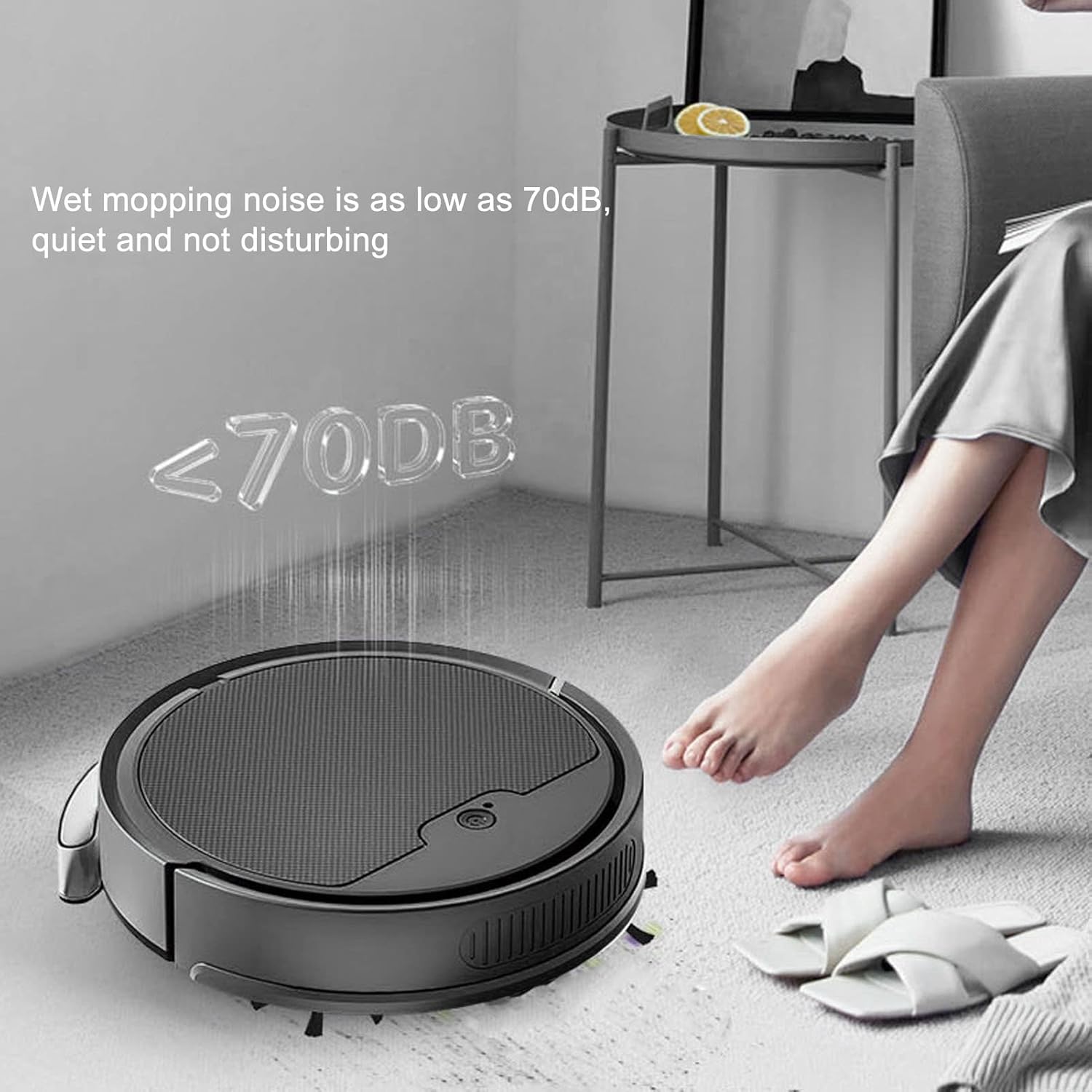 2000Pa Strong Suction: The 2000Pa super strong suction can easily remove stains on the ground. It also achieves a low noise balance without disturbing reading a book or sleeping. Built in visual sensor gives it a slimmer body, and it can freely access to the bottom of the bed, sofa, cabinet, etc.