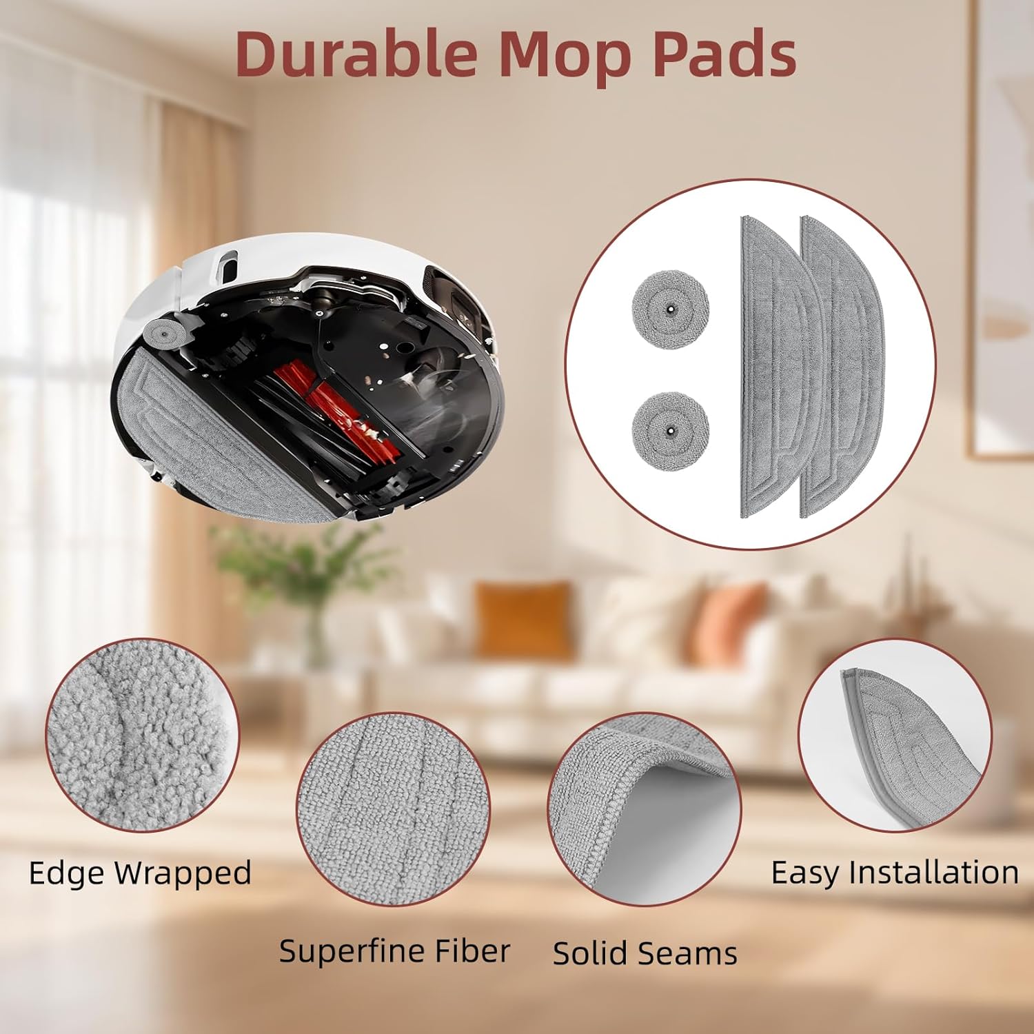 Mop Pads/Self-cleaning Brush:The reusable microfiber long and round mop pads make easy work of tough stains, leaving your floors clean and bright.Self-cleaning roller brush with high-density bristle removes dirt from used pad,finishing the self-washing process