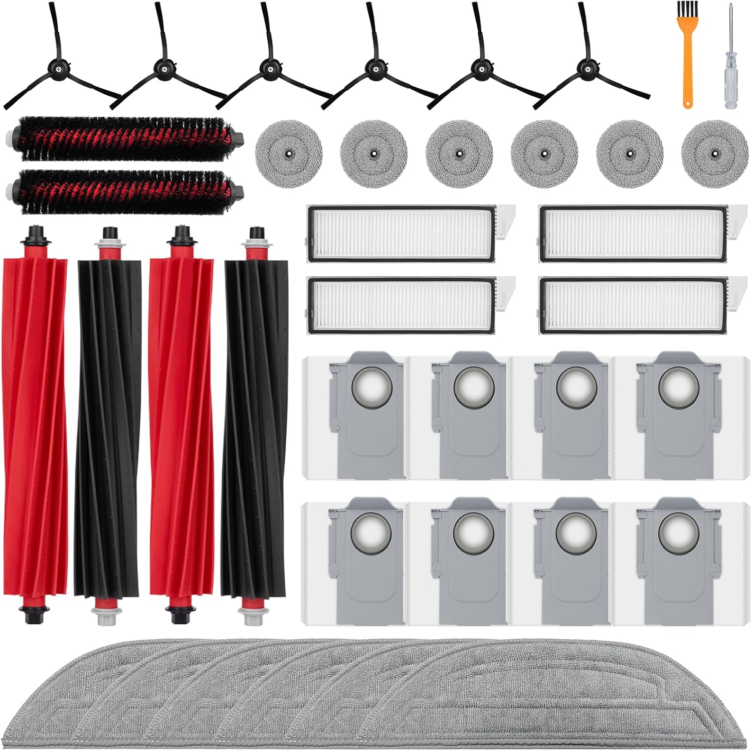 36 Pack Accessories Compatible with Roborock S8 MaxV Ultra Robot Vacuum,Main Brushes,Dust Bags,Mop Cloths,Edge Mop Cloths,Filters,Side Brushes,Self-Main Brush,Cleaning Brush, Screwdriver