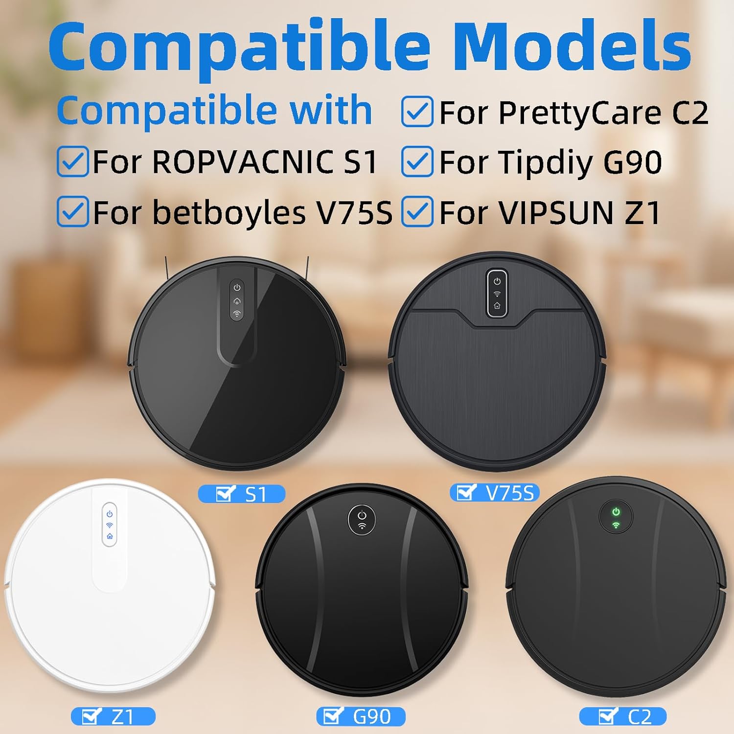 Compatible Models: These accessories compatible for ROPVACNIC S1, for betboyles V75S, for Tipdiy G90, for VIPSUN Z1, for PrettyCare C2 Robot Vacuum and Mop Combo