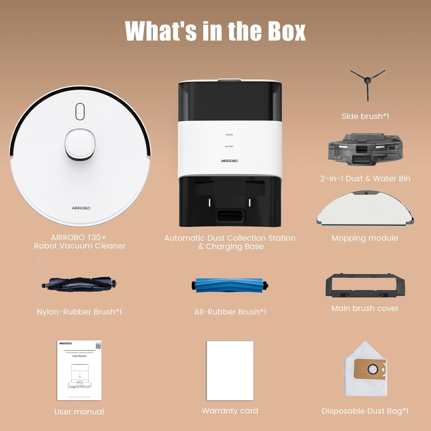 The AIRROBO Robot Vacuum and Mop is suitable for various surfaces including hardwood, tile, and carpet.