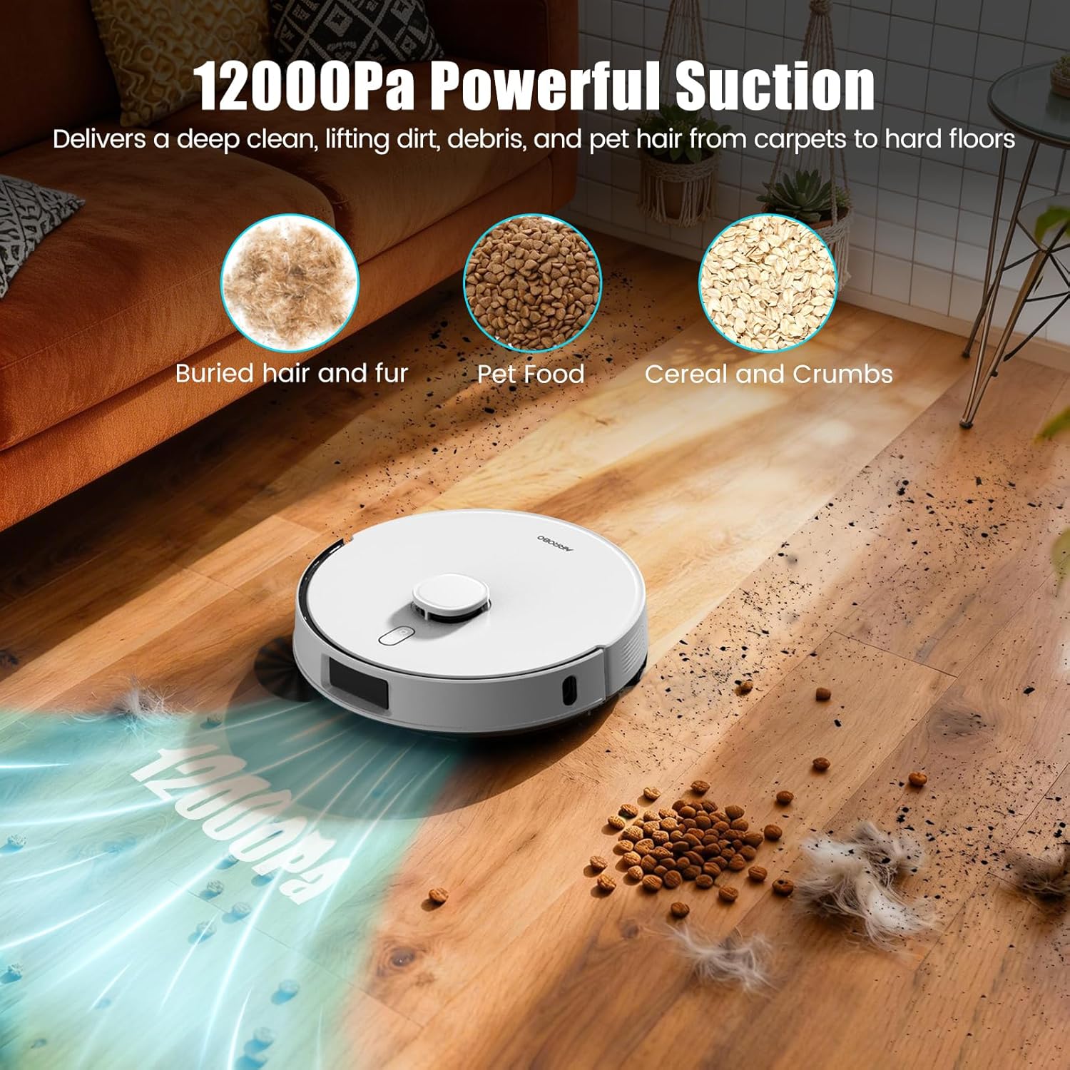 5 12,000Pa Suction Tangle-Free Rubber Brush Pet-Friendly Cleaning