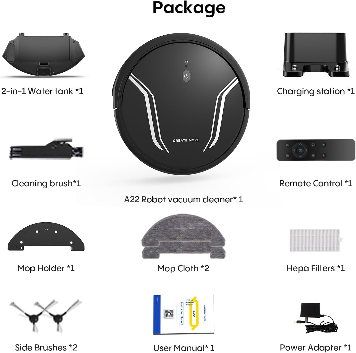 【UItra Slim & Smart Obstacle Avoidance】 With a slim 2.87-inch design, this vacuum robots for home easily cleans under furniture and inside cabinets. Anti-collision and anti-drop sensors help it avoid obstacles and stairs.