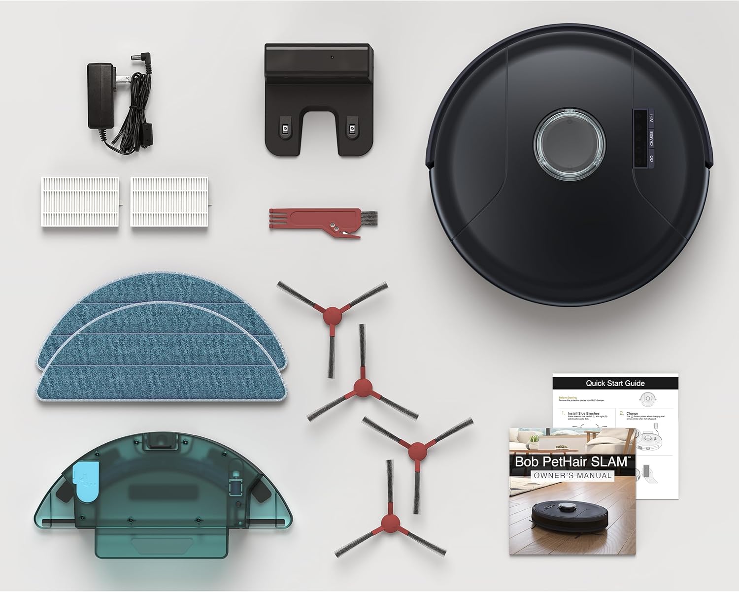 Double the power: Main brush and twin side brushes spin in tandem to tackle large scraps, dust, and hair collected along baseboards and in the corners. Bob’s TurboLift vacuum and a 120 minute runtime ensure that nothing is left behind.