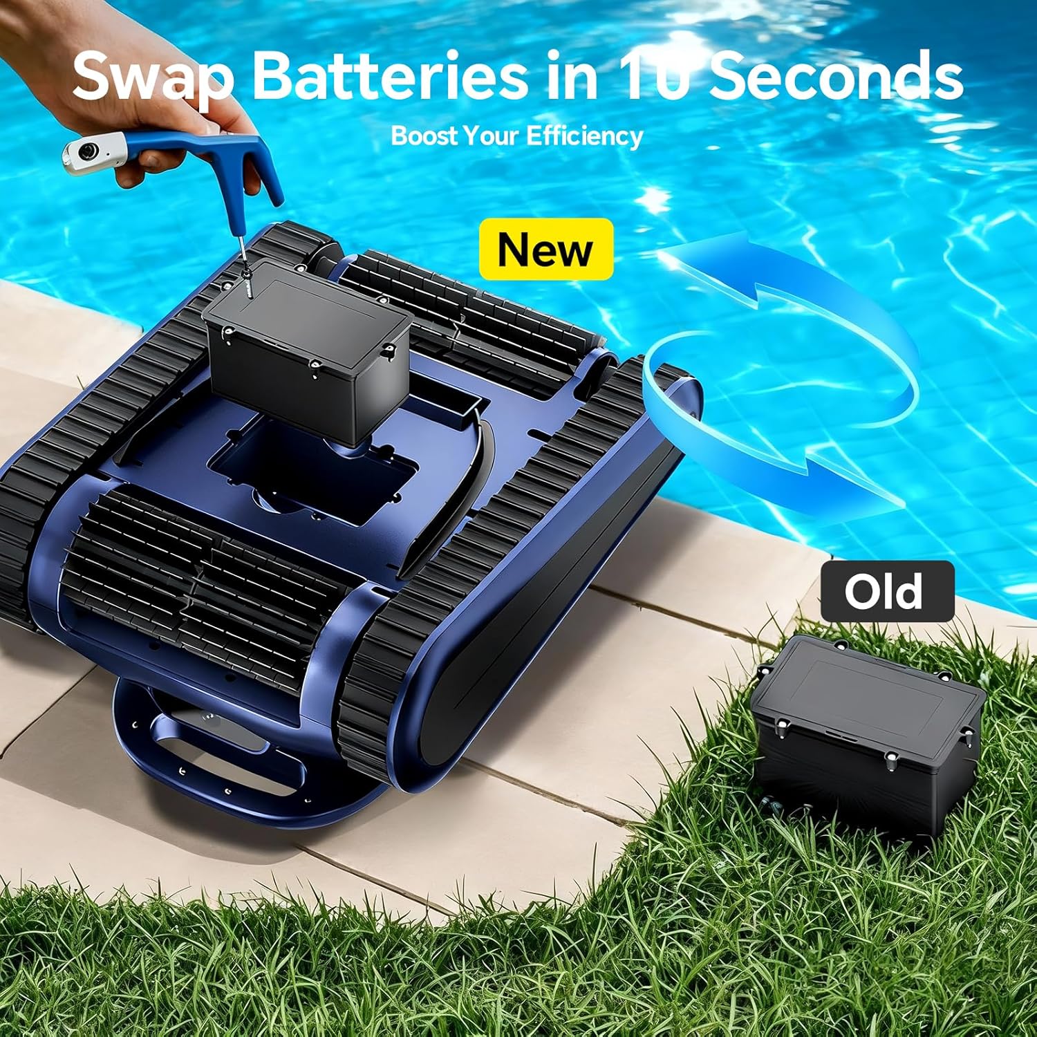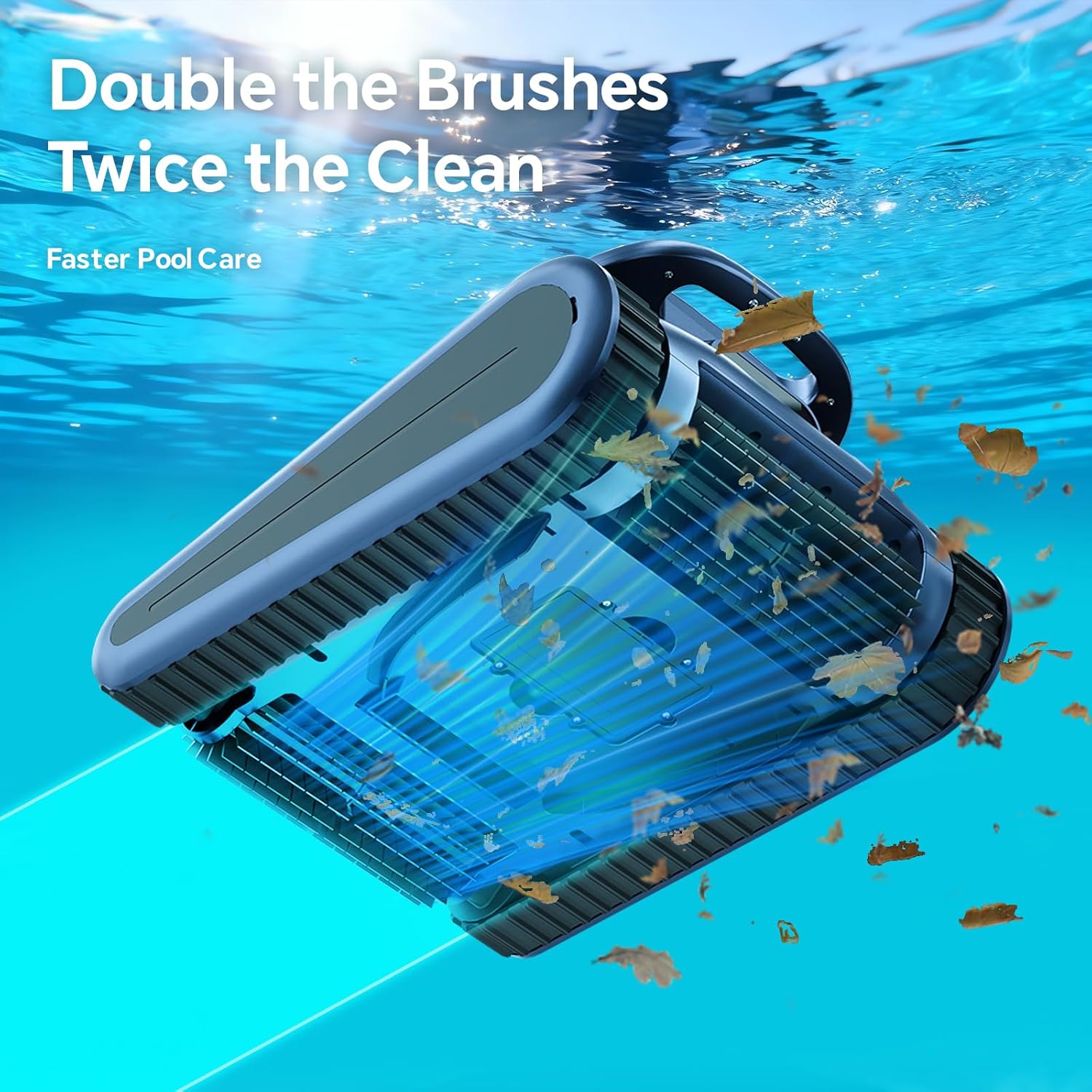 45,000Pa High-Power Suction — Cleaner, Faster, Stronger: Powered by a 180W brushless motor, SAT30new Pool Vacuum delivers up to 45,000Pa of suction power to capture heavy leaves, sand, fine silt, and stubborn debris. Designed for both inground and above-ground pools, it provides powerful, reliable cleaning where standard pool vacuums fall short.