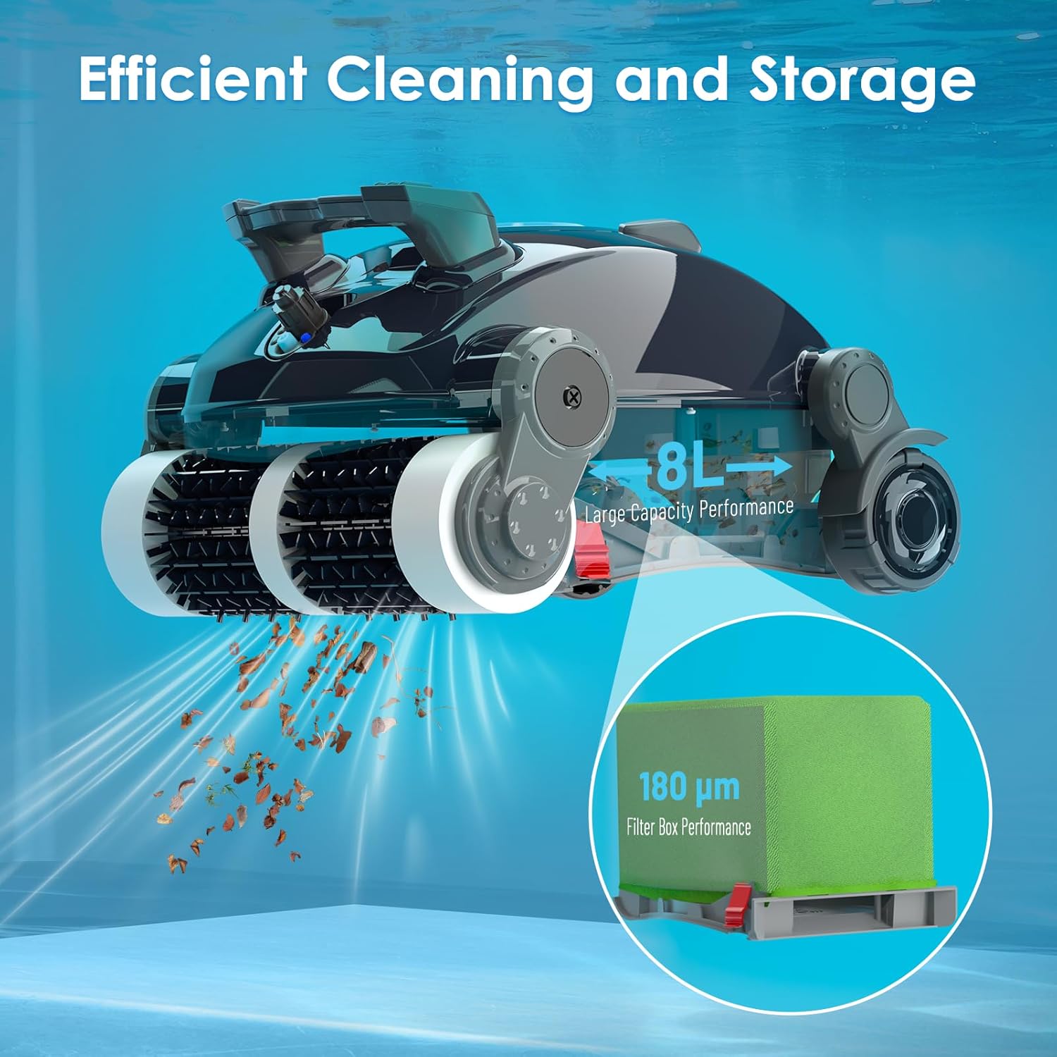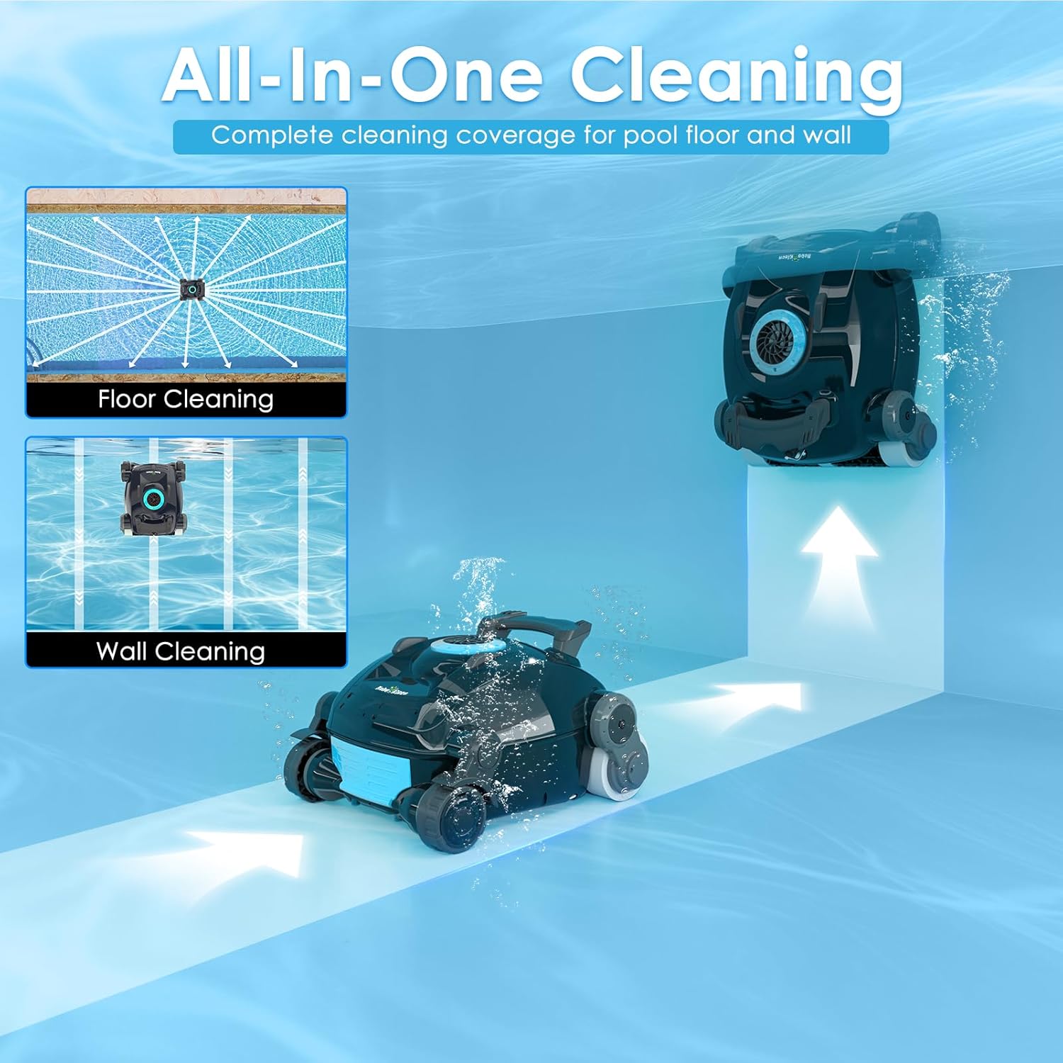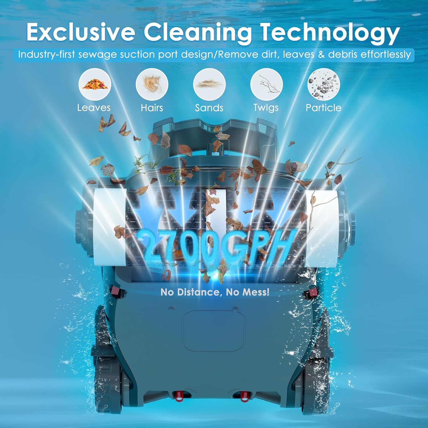 【Exceptional Cleaning Performance】Our advanced algorithms and powerful 2700GPH suction ensures your pool receives a comprehensive, deep clean on all surfaces. The optimized cleaning paths leave your pool sparkling clean in all areas with minimal effort on your part;