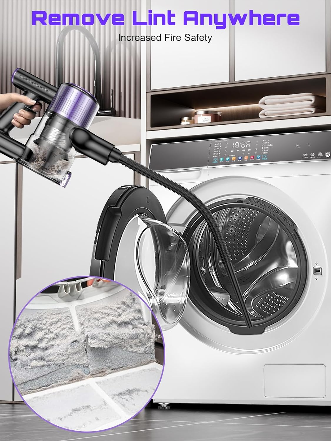 Upgraded Extra-Long Hose: The cordless vacuum whit 29-inch flexible hose is perfect for reaching challenging areas, including dryer vents and outdoor exhausts. Say goodbye to clogs and potential hazards with this enhanced feature, designed to keep your home safe and appliances running efficiently.