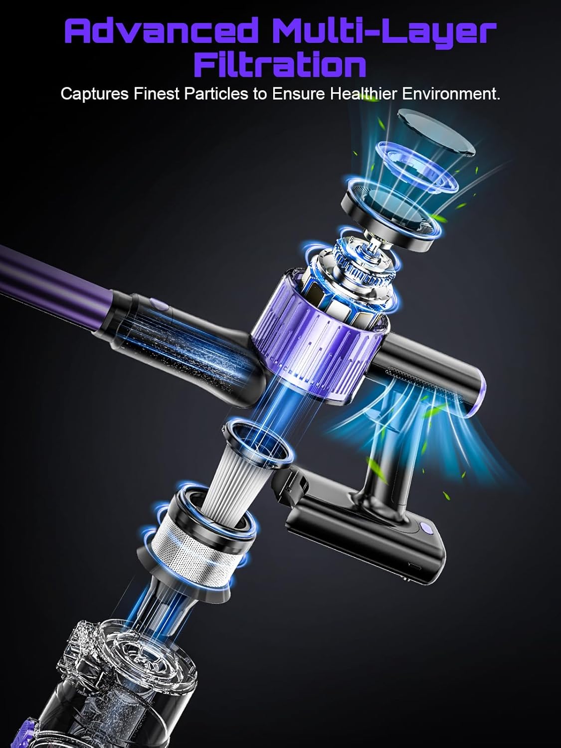 Cleaner Air for Your Family & Pets: With 99.97% 6-stage filtration, this vacuum traps fine dust and garbage, releasing only clean air back into your home. Perfect for families with kids and pets, it ensures a healthier living environment by preventing re-pollution.