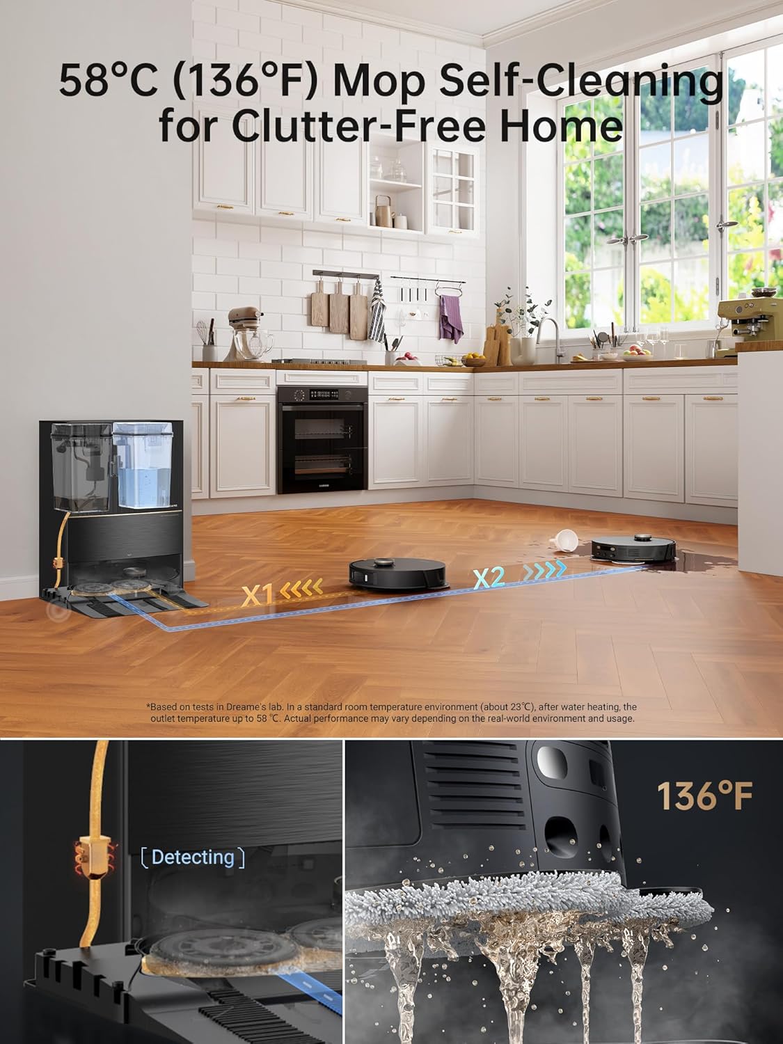 DREAME L30 Ultra Robot Vacuum, 136°F Hot Water Mop-Self-Cleaning, Mops Self-Drying, Mop-Extend, Raising, Refilling, Auto-Empty, 7,300Pa Suction, AI Action and 3D Navigation
