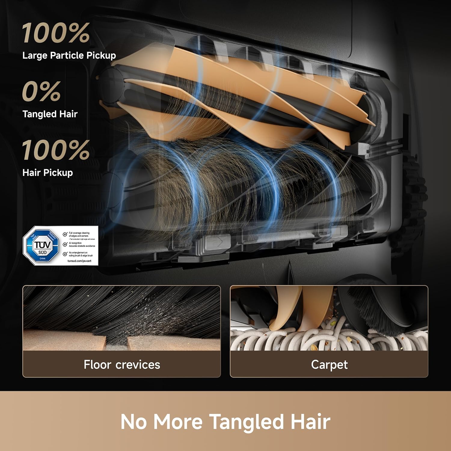 Tackle Messes in Corners: X50 Ultra extends both brush and mop to reach corners and low spaces under furniture. The redesigned brush minimizes hair tangling, ensuring a thorough clean in areas most vacuums miss.