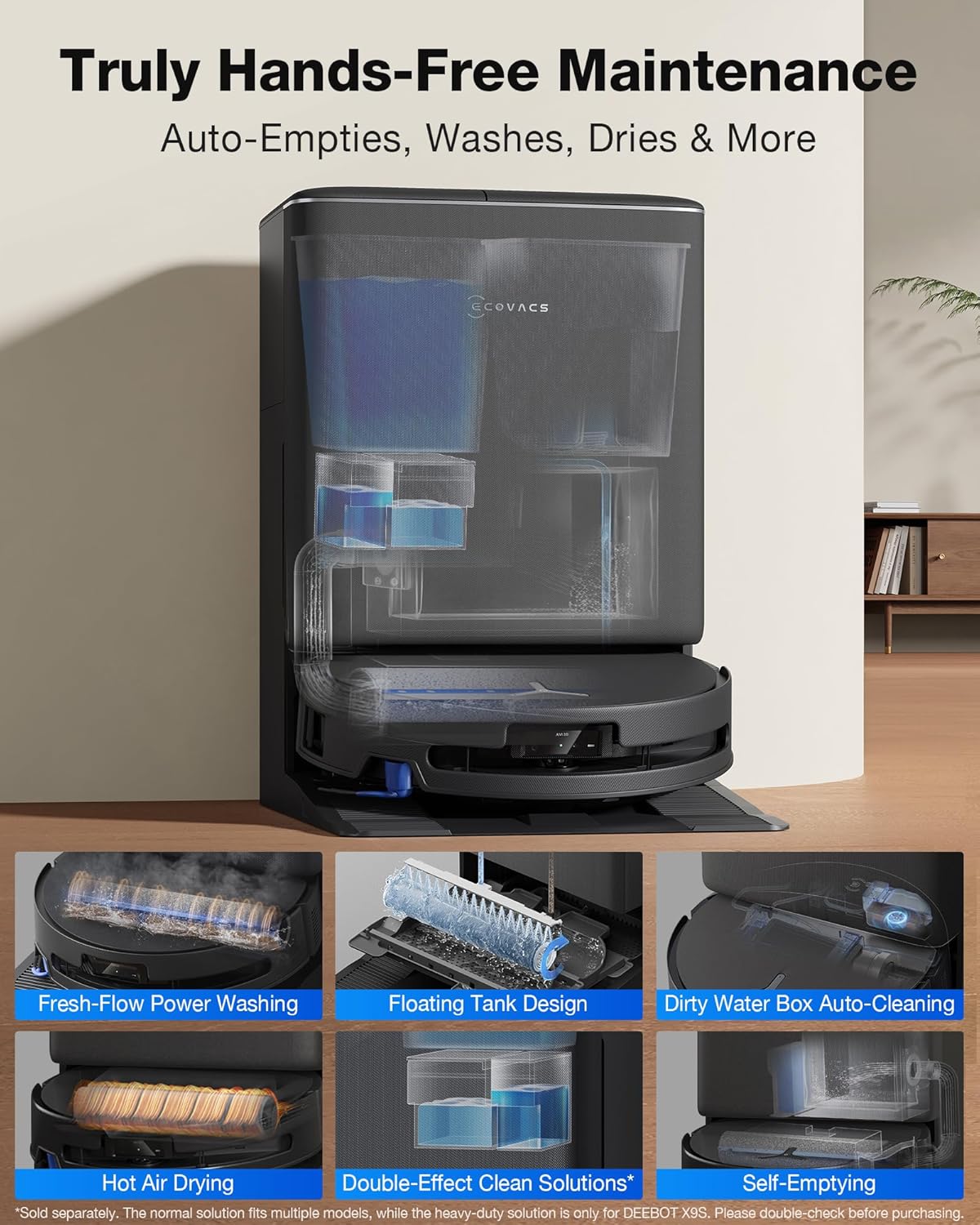 ECOVACS DEEBOT X9S PRO Omni Robot Vacuum and Mop, 30,000Pa Suction, Instant Self-Cleaning OZMO Roller Mop, TruEdge Deep Edge Cleaning, ZeroTangle, Dual-Cleaning Solution System, AI Obstacle Avoidance