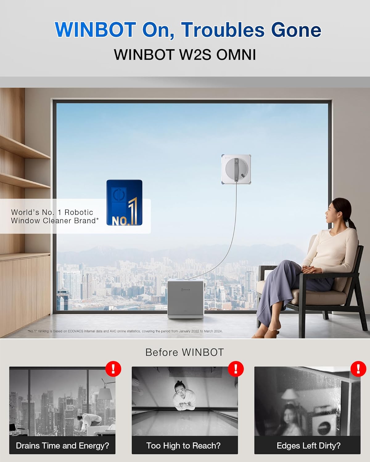 Be the first to review “ECOVACS WINBOT W2S Omni Window Cleaning Robot, with 6-in-1 Multifunction Station, TruEdge Edge-to-Edge Precision, Triple Wide-Angle Spray Nozzles, 12-Level Safety System, Dual Power Modes”