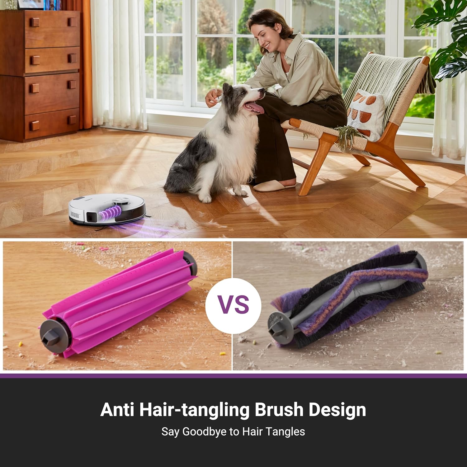 【Anti Hair-Tangling Brush Design】The advanced V-shaped rubber roller brush significantly reduces hair tangling, improving anti-wrap effectiveness by 14%*, making it fantastic for pet owners and households.