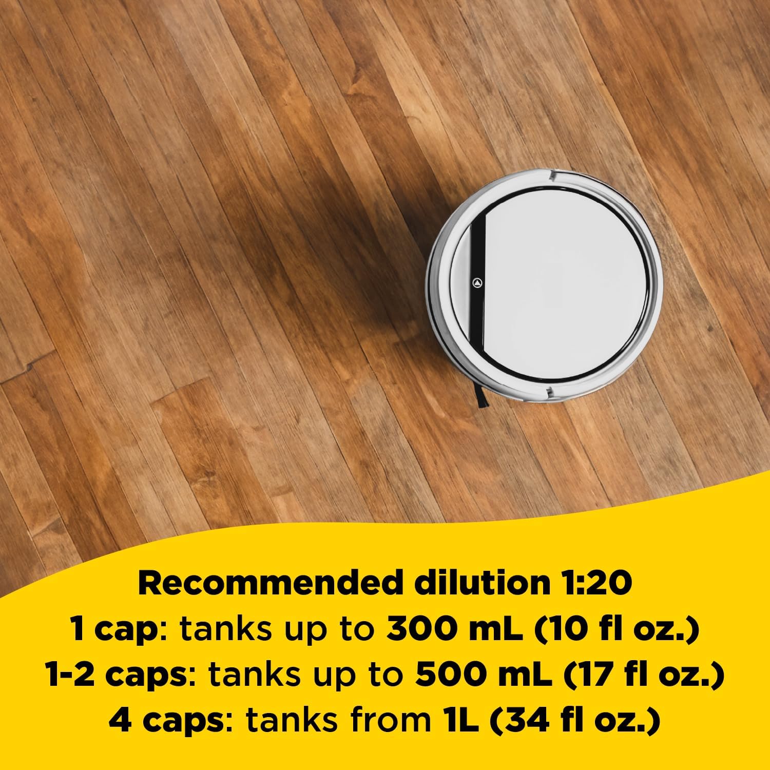 SIMPLE DOSAGE: Use one or more caps of product according to the tank capacity of your cleaning robot mop and vacuum combo.