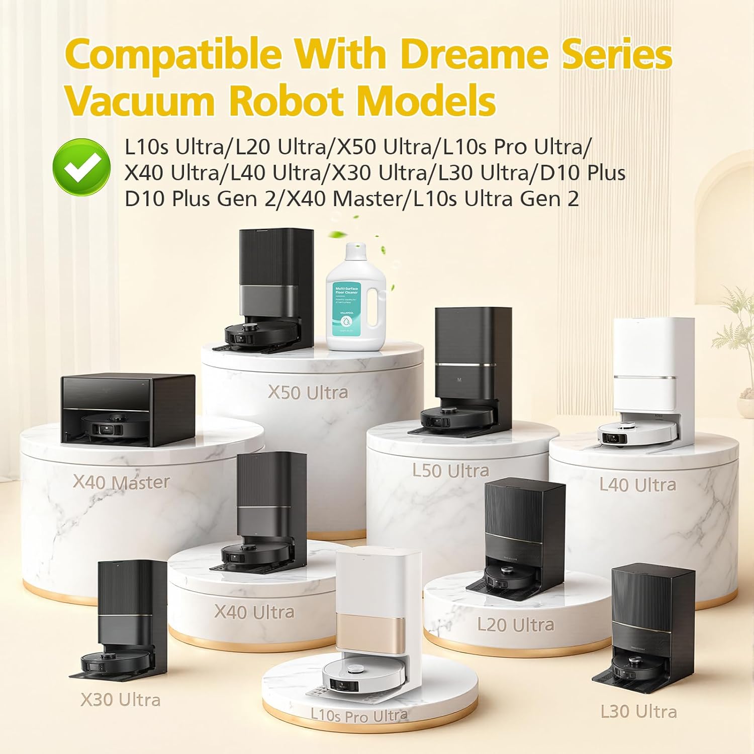 【WIDE COMPATIBILITY】Compatible with Dreame L10s Ultra/L20 Ultra/X50 Ultra/L10s Pro Ultra/X40 Ultra/L40 Ultra/X30 Ultra/L30 Ultra/D10 Plus/D10 Plus Gen 2/X40 Master/L10s Ultra Gen 2 and all robot vacuum cleaners with mopping functions, as well as all cordless wet/dry vacuum cleaners