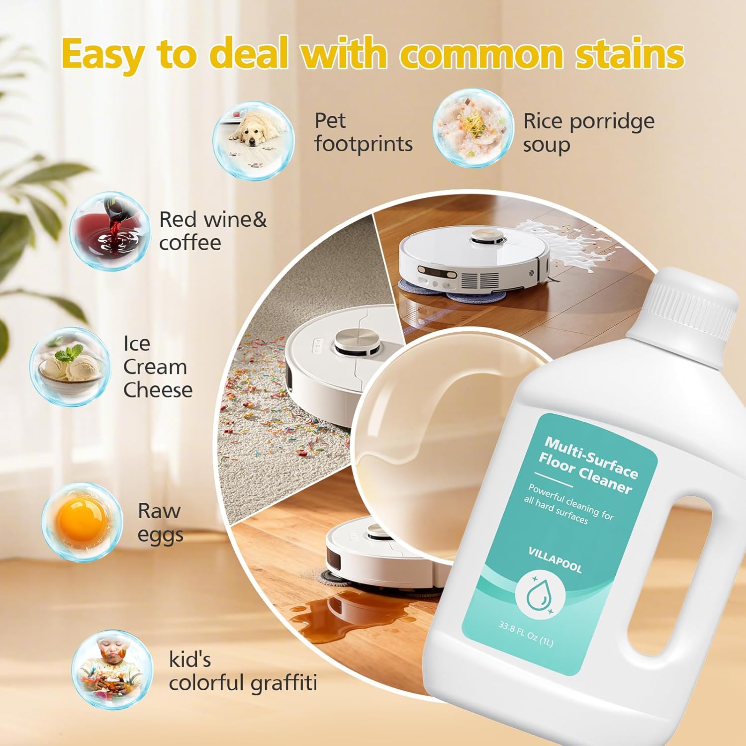 【DEEP & EFFECTIVE CLEANING】Specially formulated floor cleaning solution effectively dissolves dirt, grime, and sticky messes for spotless results. Ideal for daily cleaning in high-traffic areas, leaving your floors fresh and streak-free