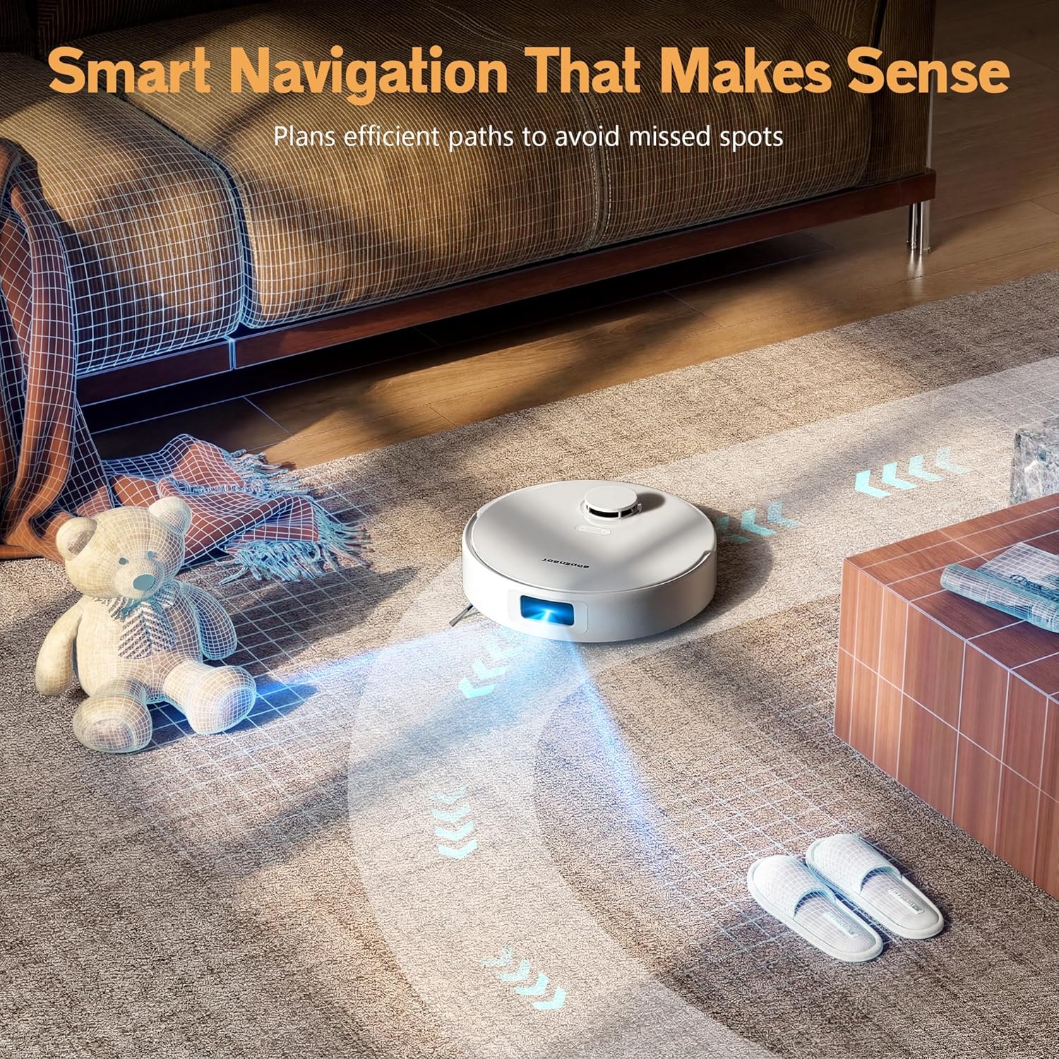 【𝐋𝐢𝐃𝐀𝐑 𝐍𝐚𝐯𝐢𝐠𝐚𝐭𝐢𝐨𝐧 𝐰𝐢𝐭𝐡 𝐒𝐦𝐚𝐫𝐭 𝐌𝐚𝐩𝐩𝐢𝐧𝐠 & 𝐍𝐨-𝐆𝐨 𝐙𝐨𝐧𝐞𝐬】- LiDAR-based navigation creates accurate maps, cleans methodically, supports multi-floor mapping, and allows no-go zones to keep the robot away from restricted areas.