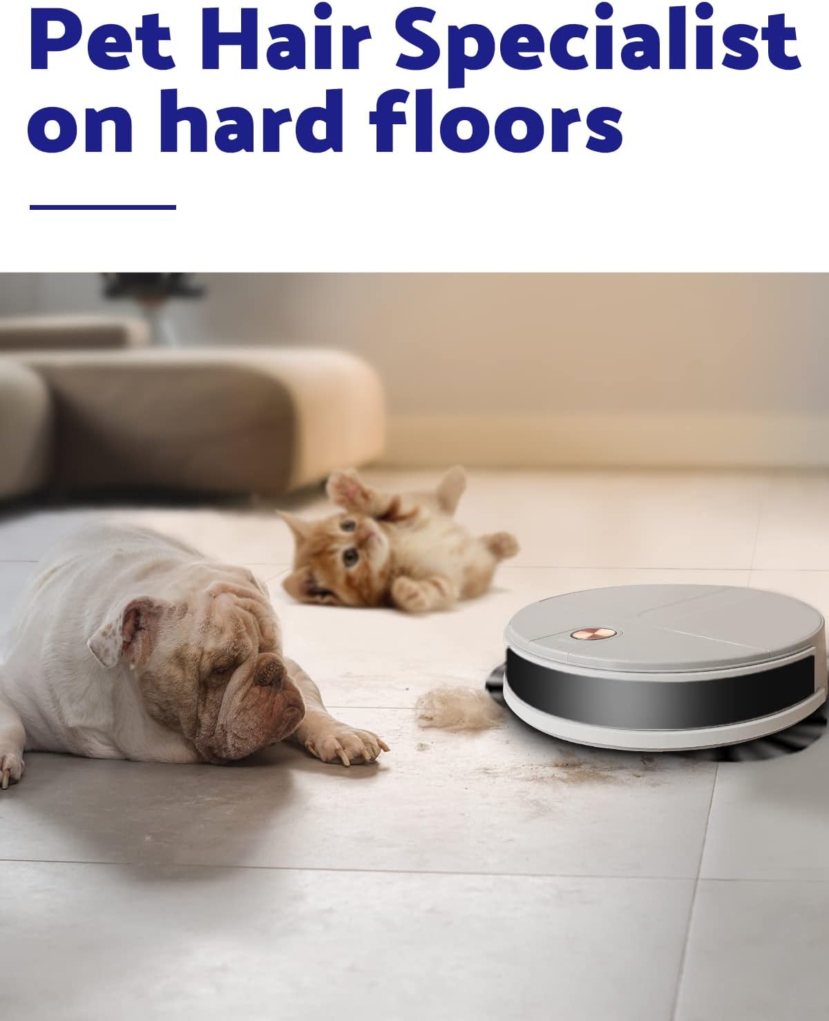 The robot vacuum is designed to tackle pet hair on hard floors with the tangle-free suction; saves the hassle to clean hair-tangled rollers like in other robot vacuums
