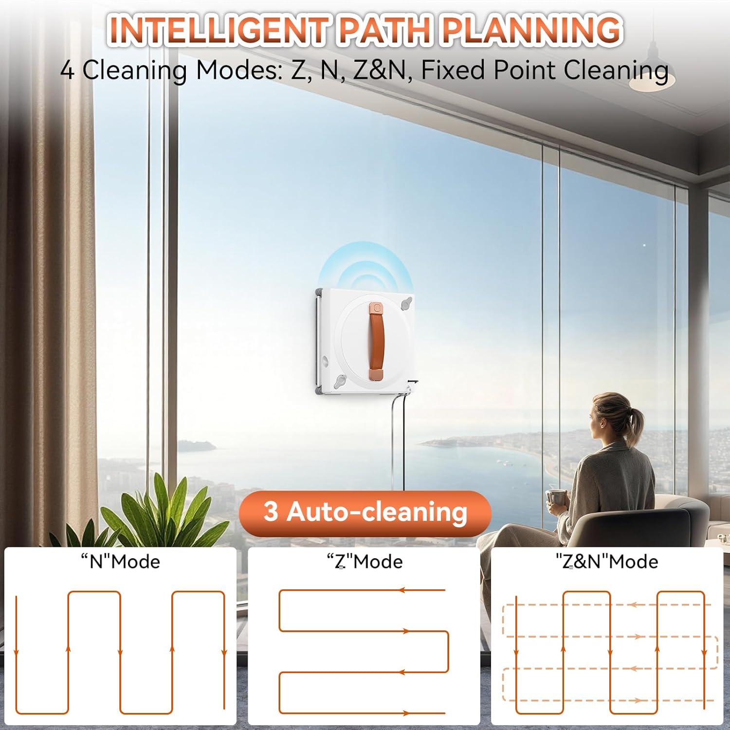 ⏩SMART PATH PLANNING – Window robot cleaner equipped with 4 cleaning modes: (Quick/Deep/Spot/Edge) tailored to your needs. The window cleaning robot navigates precisely and auto-homing — perfect for vast windows or tricky areas without ladders or strain!