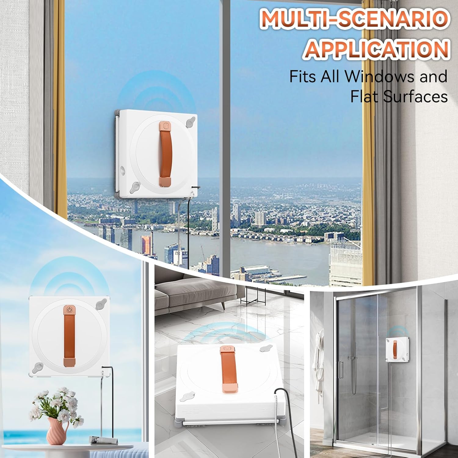 ⏩SΑFETY & WIDE COMPATIBILITY – Built-in sαfety features include anti-fall sensors and sαfety fixtures to ensure that the robot can be firmly fixed to the window during operation even on vertical surfaces. Suitable for various glass surfaces, including windows, mirrors, glass doors, etc. It is also compatible with windows of different sizes and thicknesses.