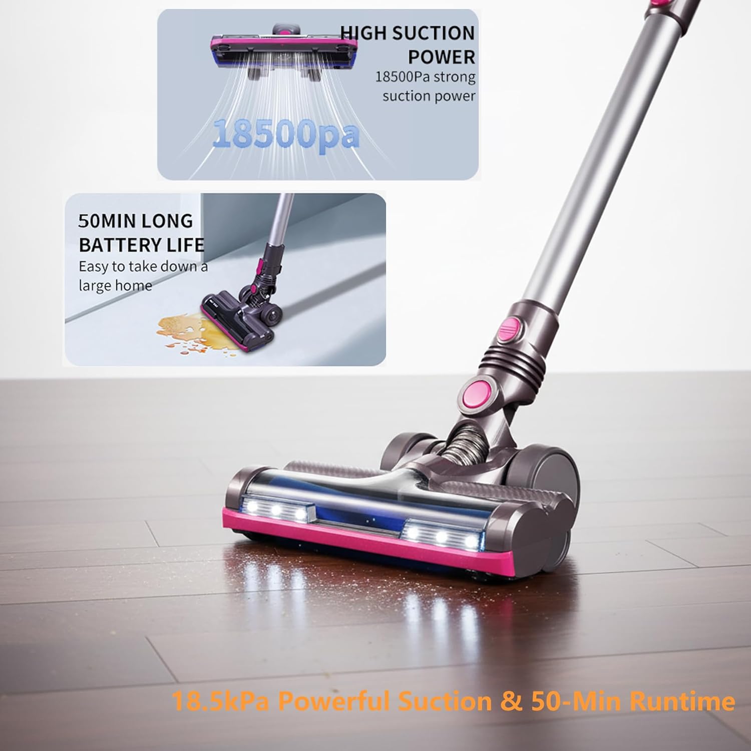 🔋 POWERFUL 18.5kPa SUCTION & 50-MIN RUNTIME – Professional-grade cyclone suction instantly lifts embedded pet hair, dust, and debris from carpets and hard floors. Clean your entire home on a single charge with advanced lithium-ion battery technology that delivers consistent power from start to finish