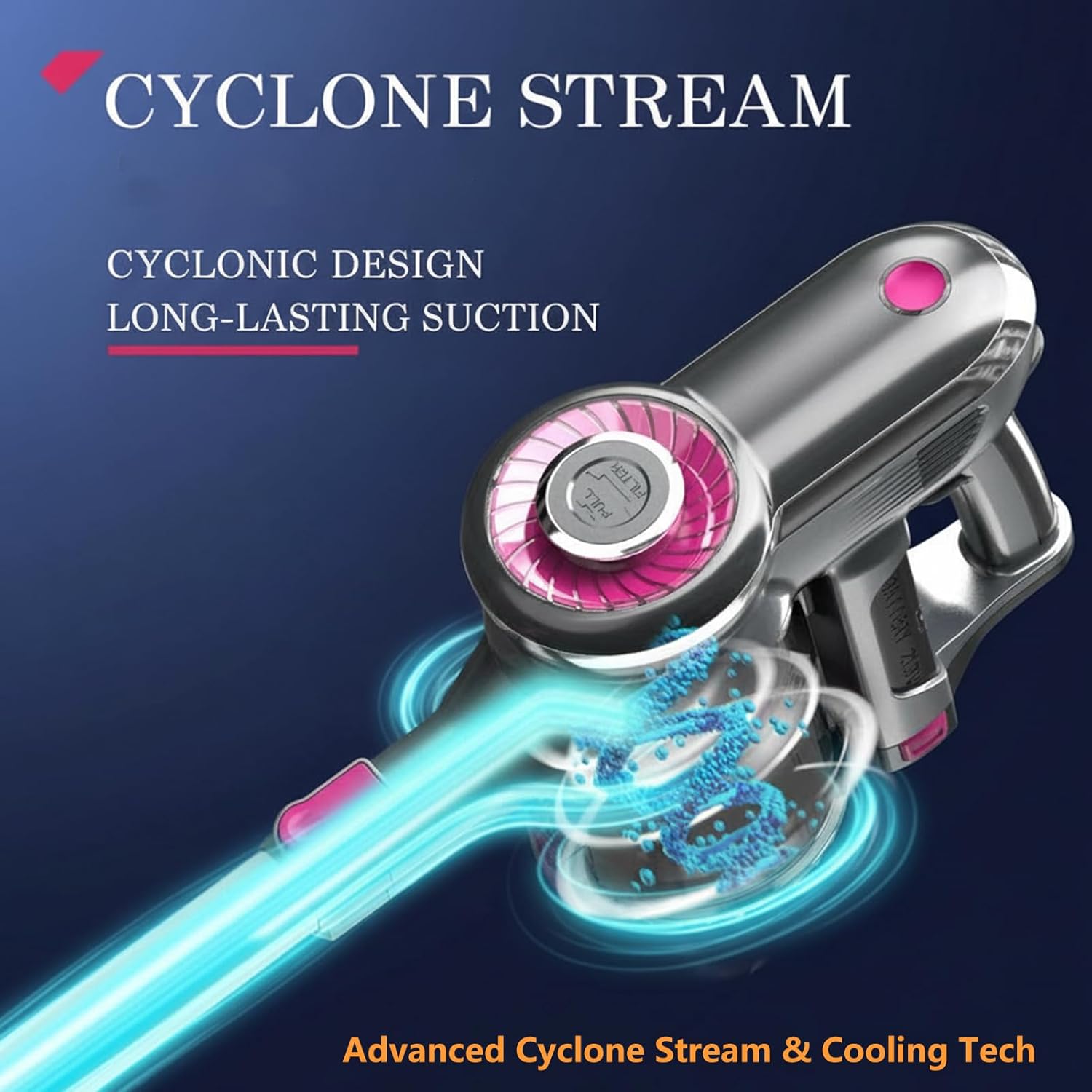 🌀 ADVANCED CYCLONE STREAM & COOLING TECH – Features a powerful cyclone stream design that locks in dust and ensures long-lasting suction. Coupled with an advanced air-cooled circulation system for extended battery life. Choose from two power modes for any task