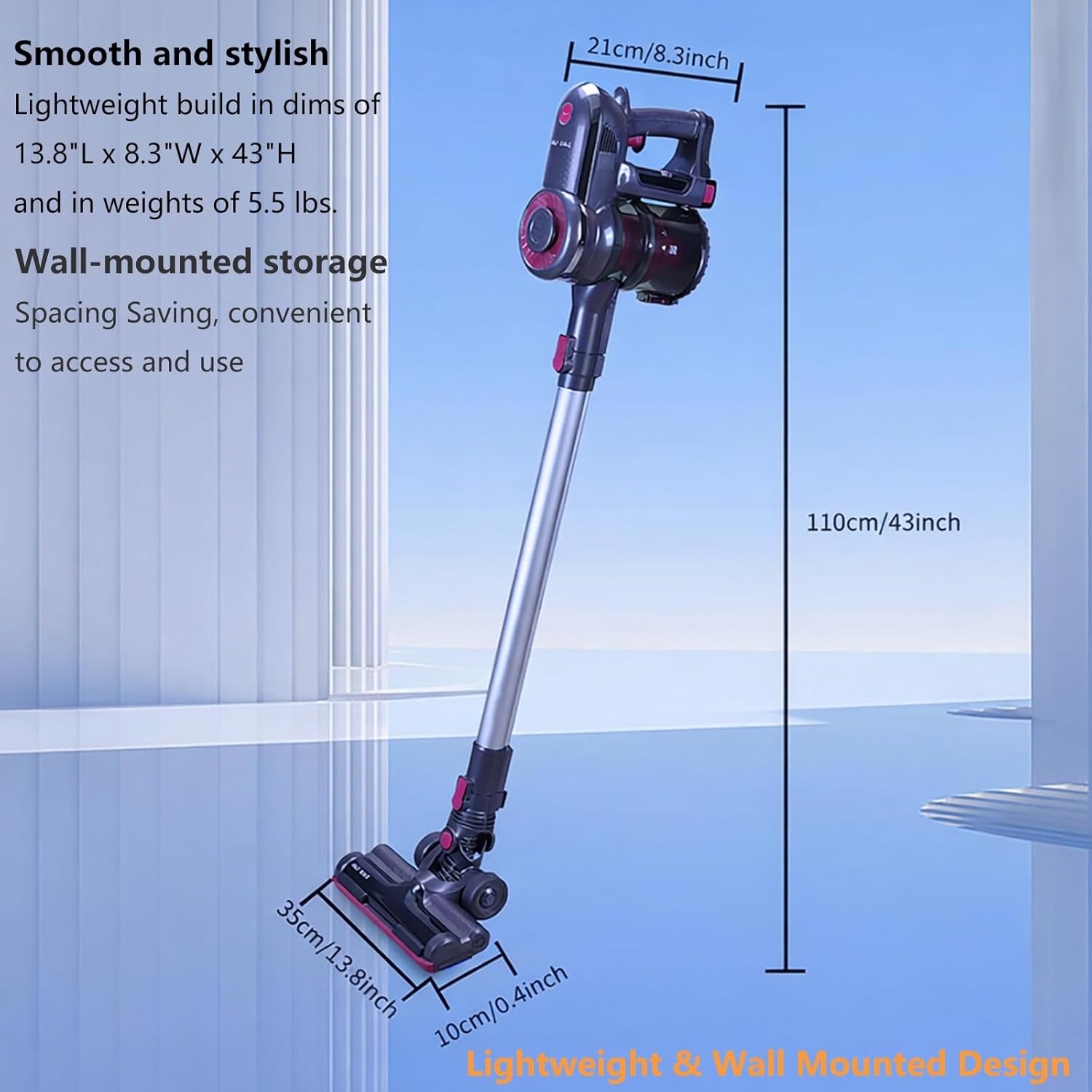 💡 LIGHTWEIGHT & USER-FRIENDLY DESIGN – At just 5.5lbs, easily maneuver around furniture and carry upstairs. LED headlights illuminate dark areas, removable handheld unit for above-floor cleaning, and convenient wall-mount storage saves space