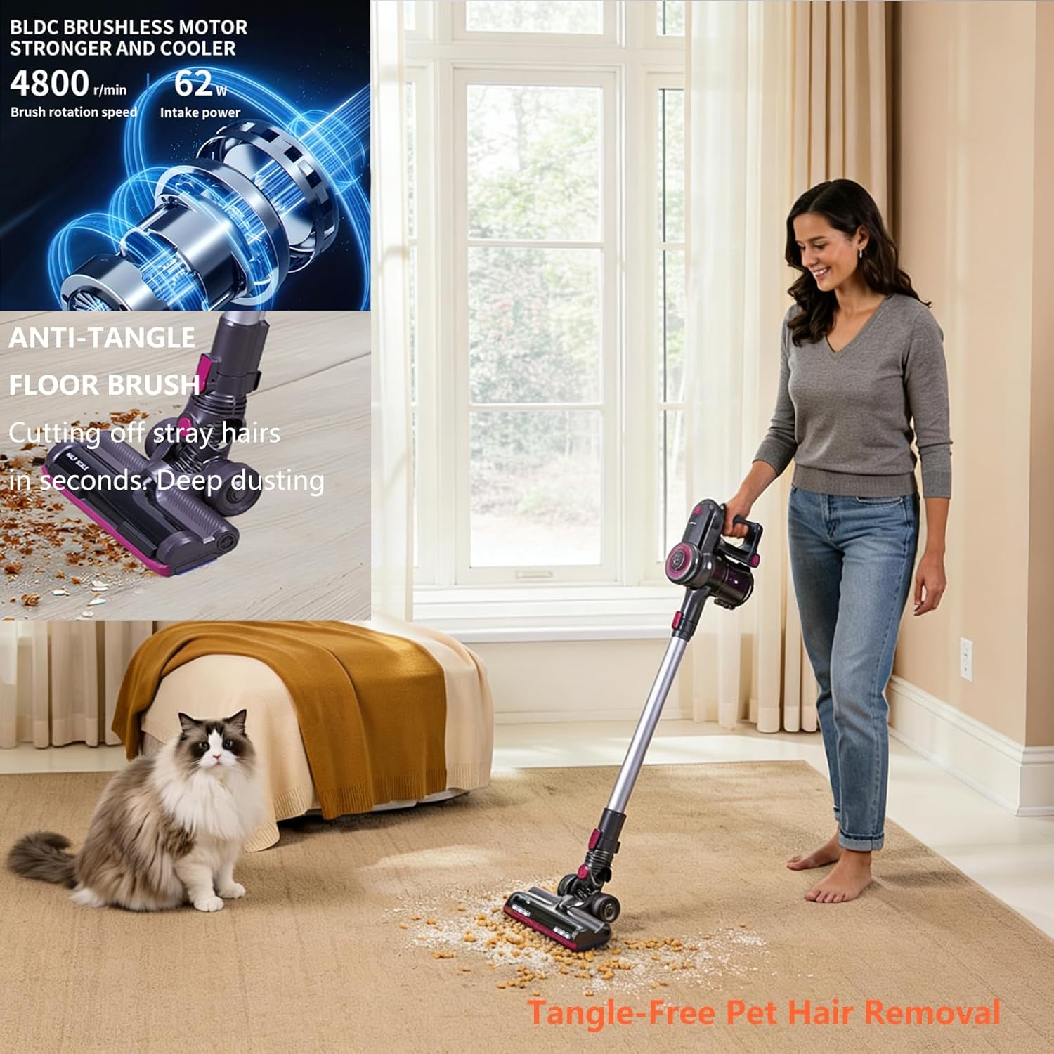 🐕 ADVANCED PET HAIR TECHNOLOGY – High-speed motorized brush (4800RPM) captures stubborn pet hair without tangles or clogs. Bright LED headlights reveal hidden fur in dark corners and under furniture. Perfect solution for pet owners dealing with daily shedding