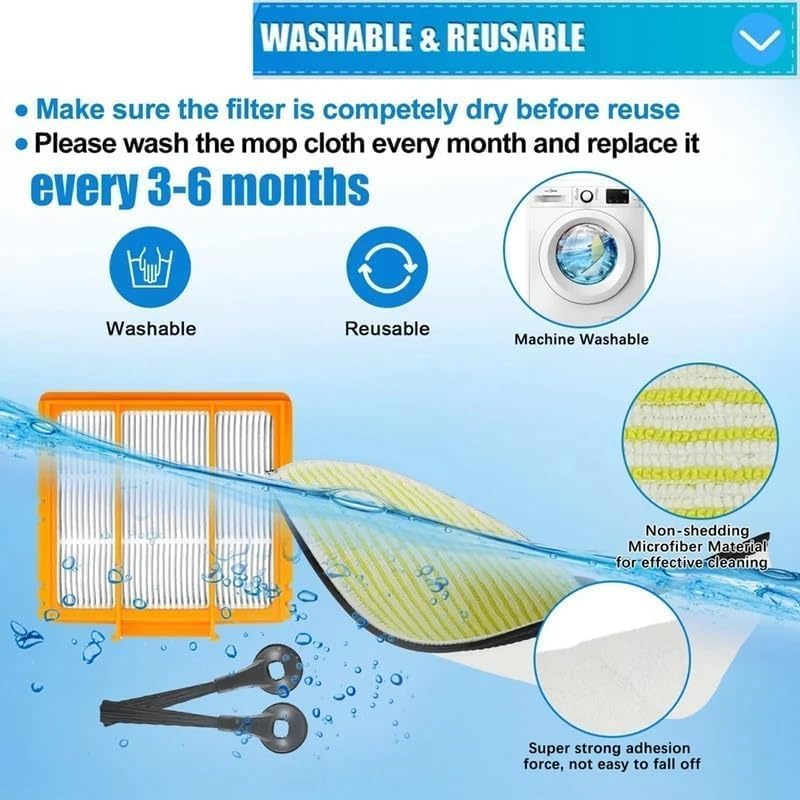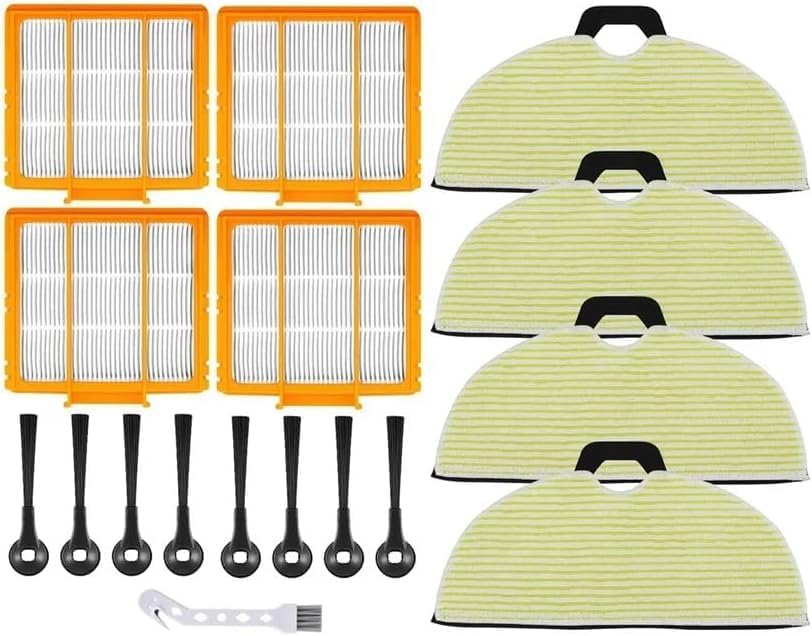 【Package Contents】: 8 x Side brush, 4 x Filter, 4 x Mop cloth.