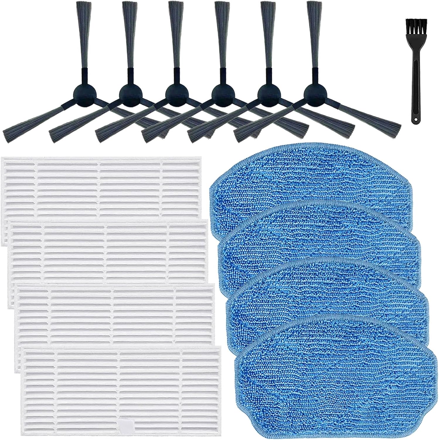 Package Include – Includes 4 pack Vacuum Filters, 4 Pack Mop Pads, 6 Pack Side Brushes, 1 Cleaning Tools