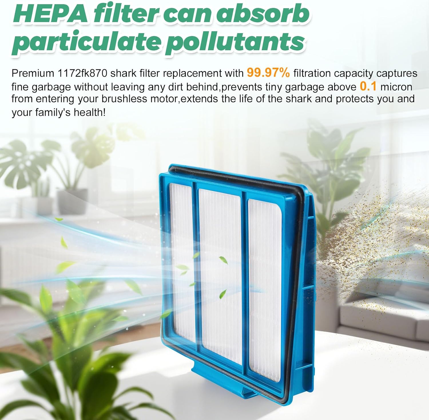 [𝗘𝘅𝗰𝗲𝗹𝗹𝗲𝗻𝘁 𝗣𝗲𝗿𝗳𝗼𝗿𝗺𝗮𝗻𝗰𝗲 𝗼𝗳 𝗦𝗵𝗮𝗿𝗸 𝗥𝗲𝗽𝗹𝗮𝗰𝗲𝗺𝗲𝗻𝘁 𝗣𝗮𝗿𝘁𝘀] Premium shark hepa filters rvffk950 1172fk870 with up to 99.97% higher filtration capacity to capture fine litter without leaving any dirt and prevent tiny litter over 0.1 micron from entering your brushless motor, extend the life of the Shark, protecting your health and that of your family