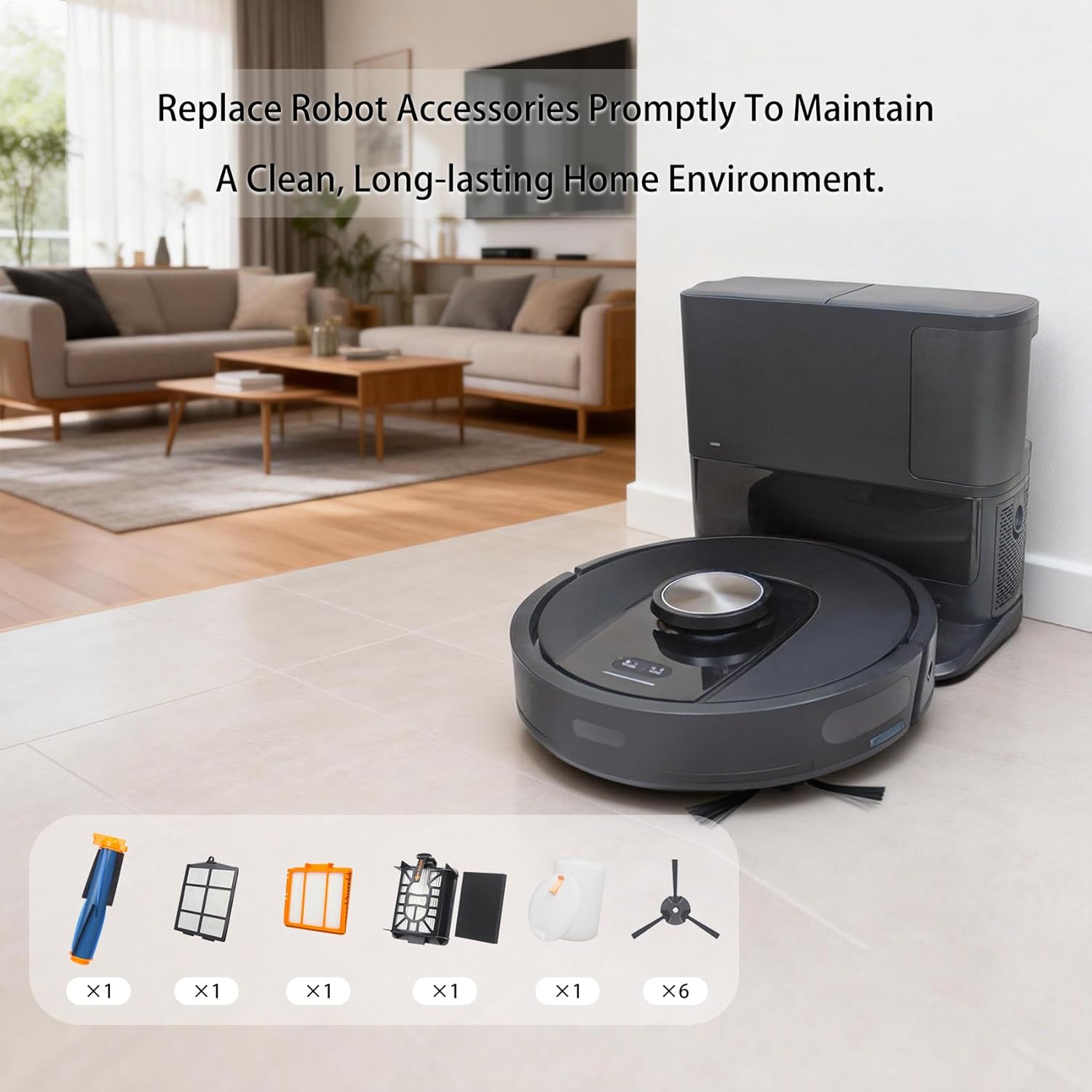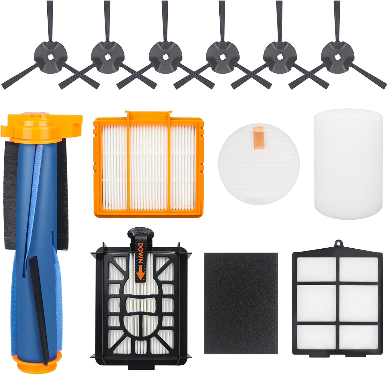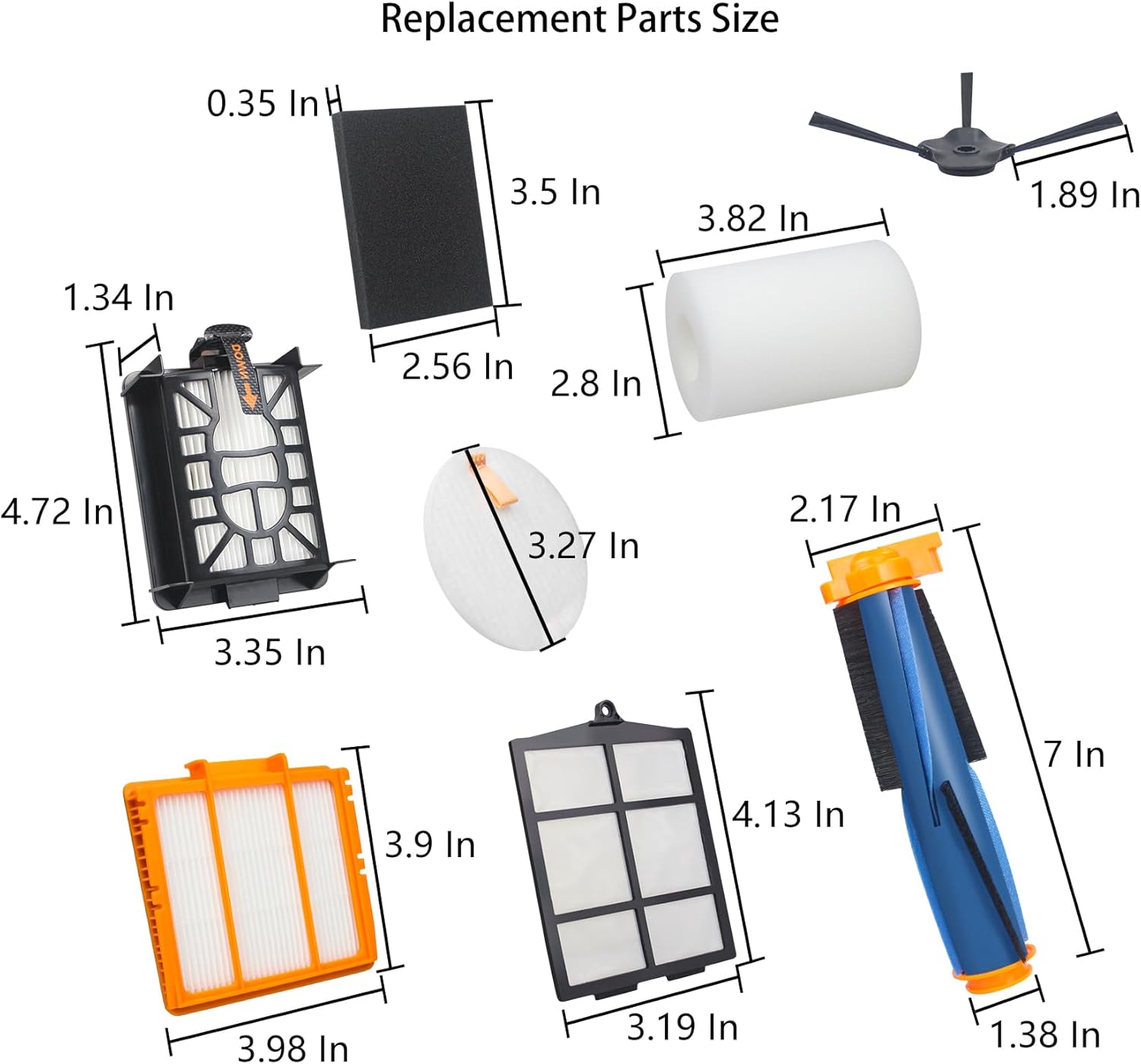 1 Roller Brushes, 1 Pre-Motor HEPA Filters, 1 Pre-Motor Prefilters, 6 Side Brushes, 1 Pre-Moter Foam Filters, 1 Base Pre-Moter Felt Filters, 1 Base Post- Motor HEPA Filter, 1 Base Post- Motor Foam Filter.