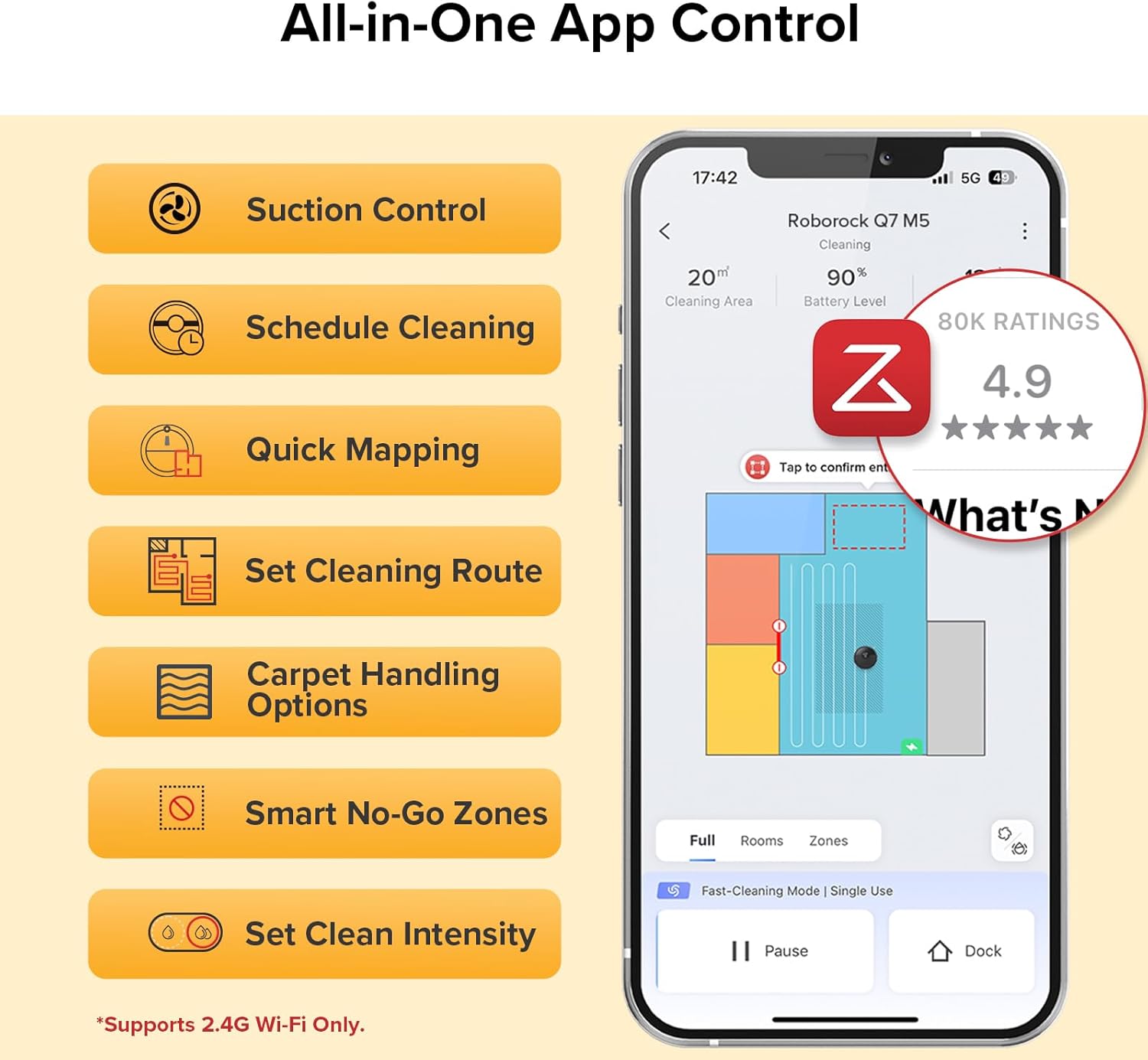 Smart App & Voice Control: Through the Roborock app, you can easily set schedules, adjust suction, and set no-go zones and mopping levels, making smart home living truly accessible.