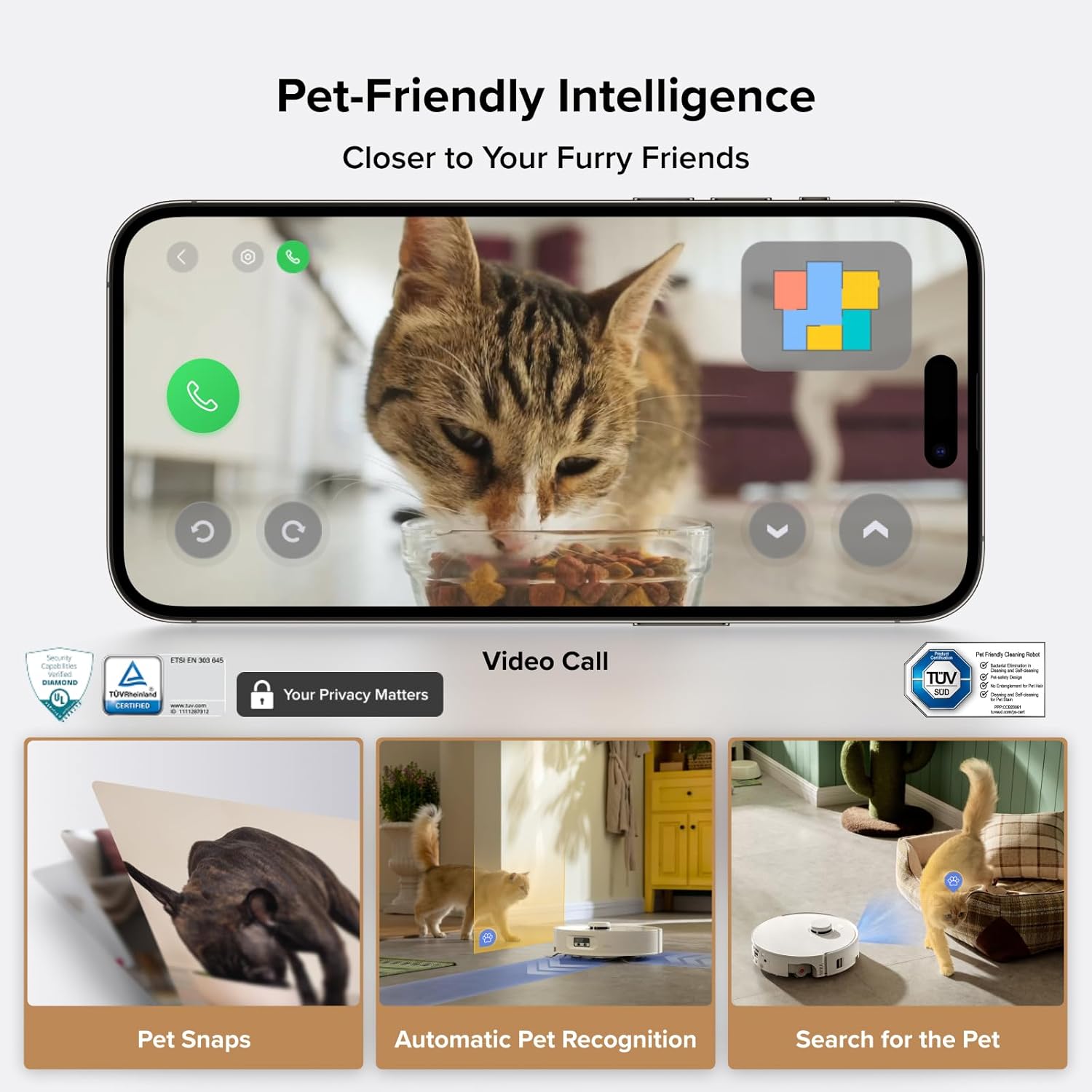 SpiraFlow Real-Time Self-Cleaning Mop: The robot vacuum delivers spotless floors with eight precise hydration points that evenly distribute clean water while the built-in scraper refreshes the mop in real time and prevents streaks. The edge-adaptive roller reaches corners, chair legs, and edges with ease for 100% sweeping, using 15N pressure and 220RPM rotation for a deep, consistent clean.