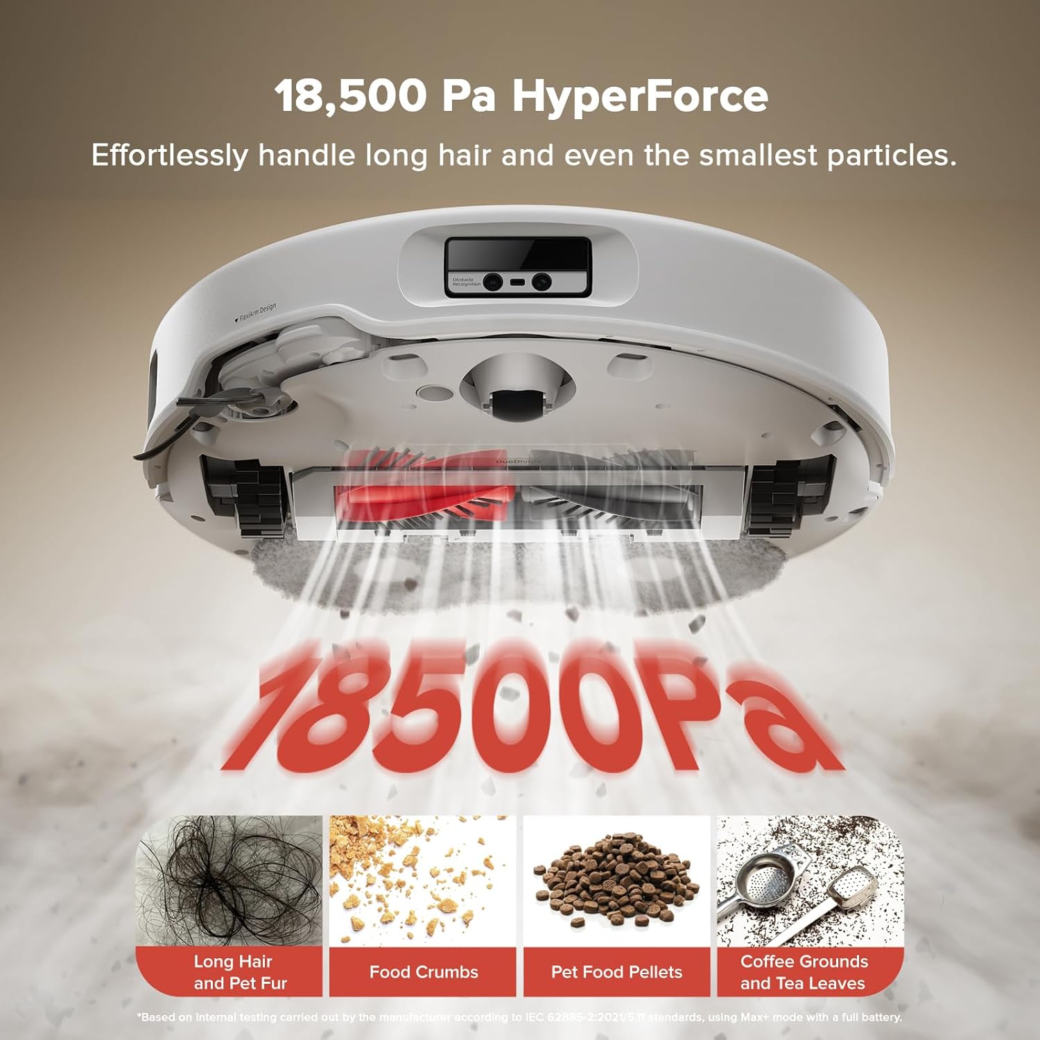 Unmatched Deep Cleaning: Experience powerful suction with 18,500 Pa HyperForce, designed to capture even the smallest dust particles and pet hair. The DuoDivide Main Brush channels debris directly into the dustbin, ensuring that dirt hiding in carpet fibers or between floor gaps is thoroughly removed