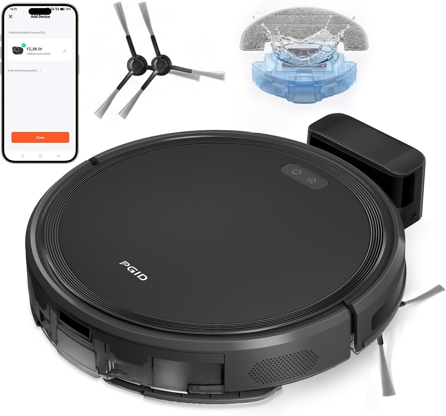 [2-IN-1 ROBOT VACUUMING AND MOPPING] Experience the latest in vacuuming and mopping with our FGID F5C Robot vacuum and mop combo. The F5C Robot vacuum has separate water and dust tanks, allowing you to vacuum and mop simultaneously. Suitable for all hard floors. Wet and dry cleaning, to meet different cleaning needs, completely save your hands from working, giving you more time to rest and accompany the family.