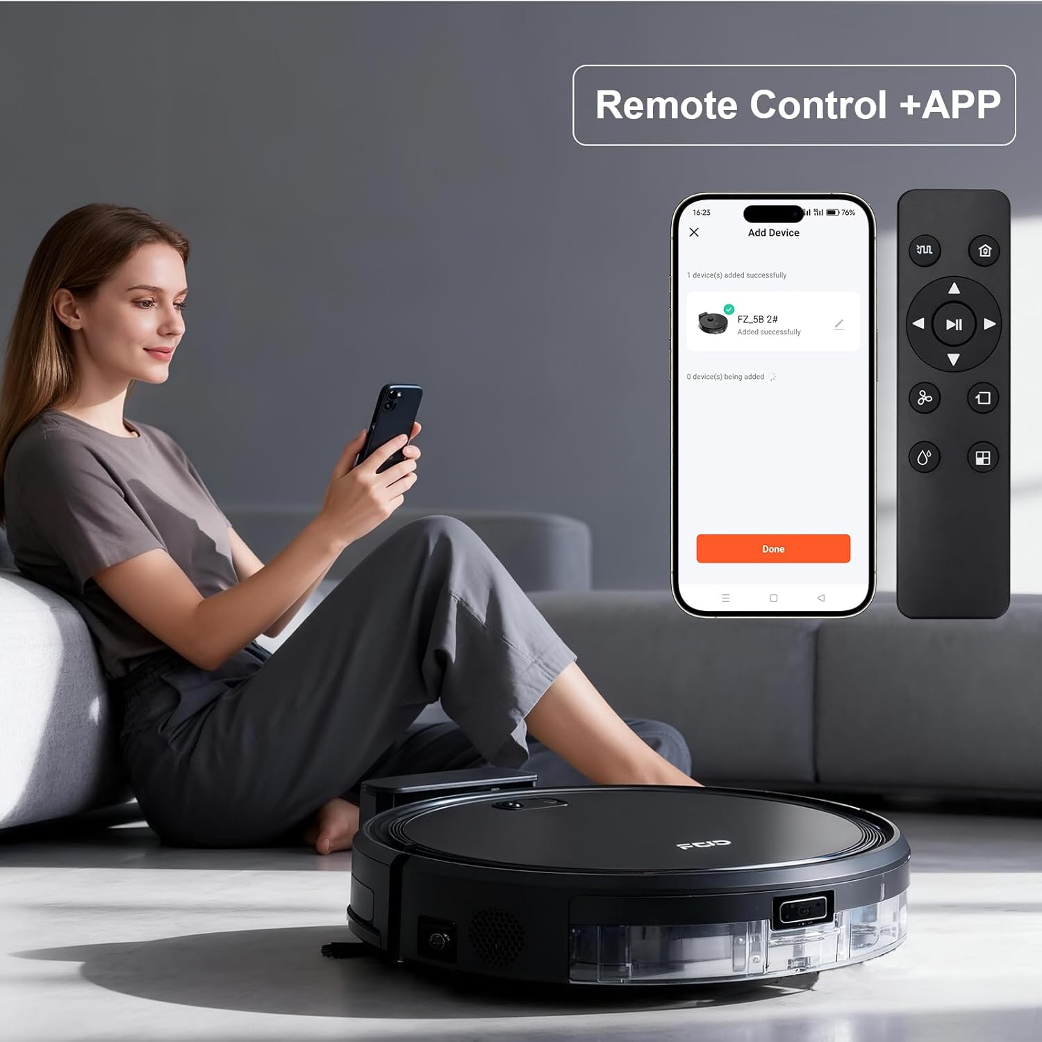 [SMARTER AND QUIETER] FGID F5C robot vacuum and mop combo is equipped with 15 sets of smart infrared sensors that intelligently recognize and avoid white walls, stairs, and obstacles. The robot vacuum cleaner climbs up to 15° and can easily cross thresholds or carpets. The 2.90-inch slim design easily reaches hard-to-reach places under furniture, cleans residual dirty areas, and keeps your house neat. The F5C robot vacuum and mop combo is designed to be used in a variety of applications.