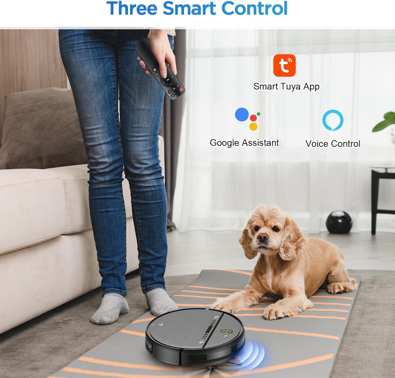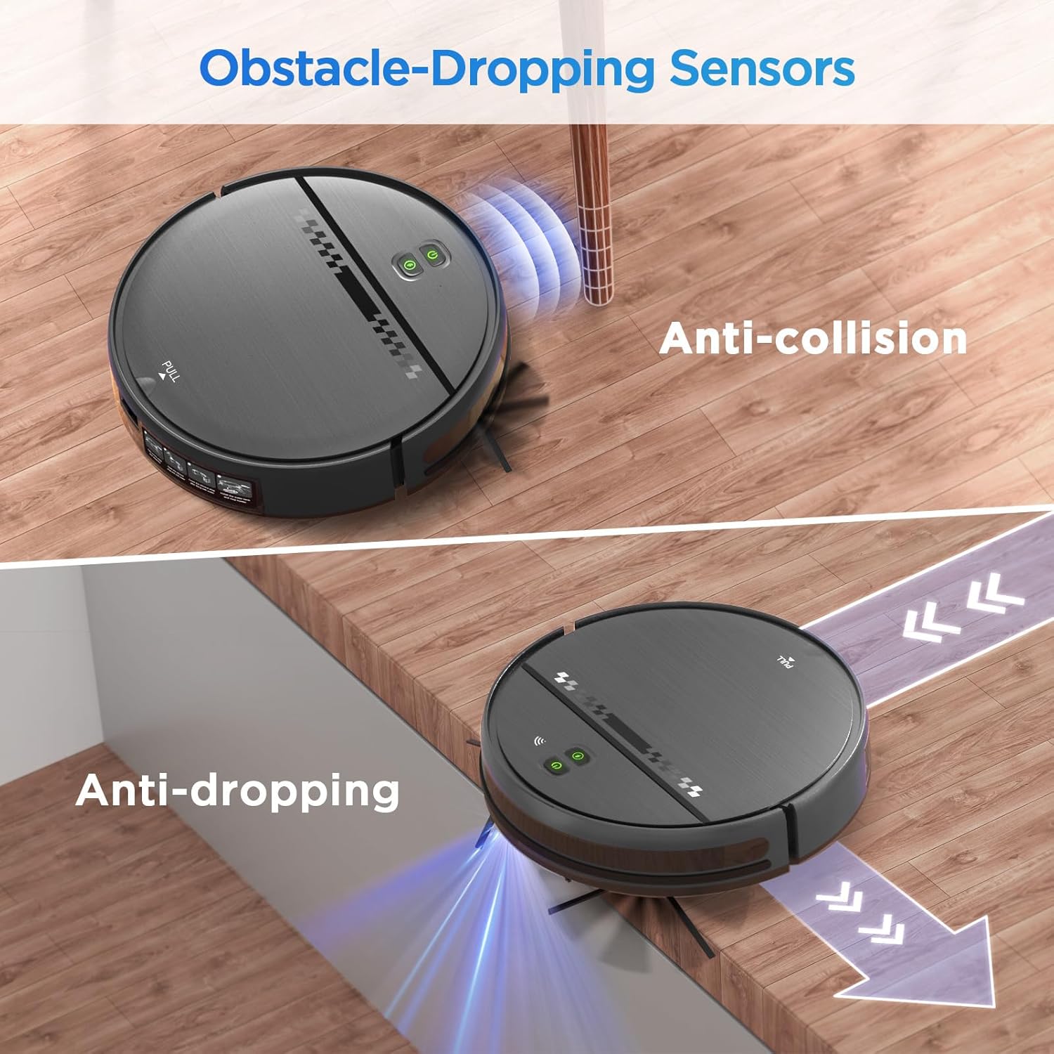 Anti-Bump and Anti-Fall: Robotic vacuum cleaner including anti-drop sensors and an infrared buffer anti-collision board, is impressive as it allows the vacuum to navigate and clean efficiently without colliding with obstacles or falling off stairs. Additionally, the boost-Intellect technology automatically adjusting the suction power when transitioning from different floor surfaces is a convenient feature.