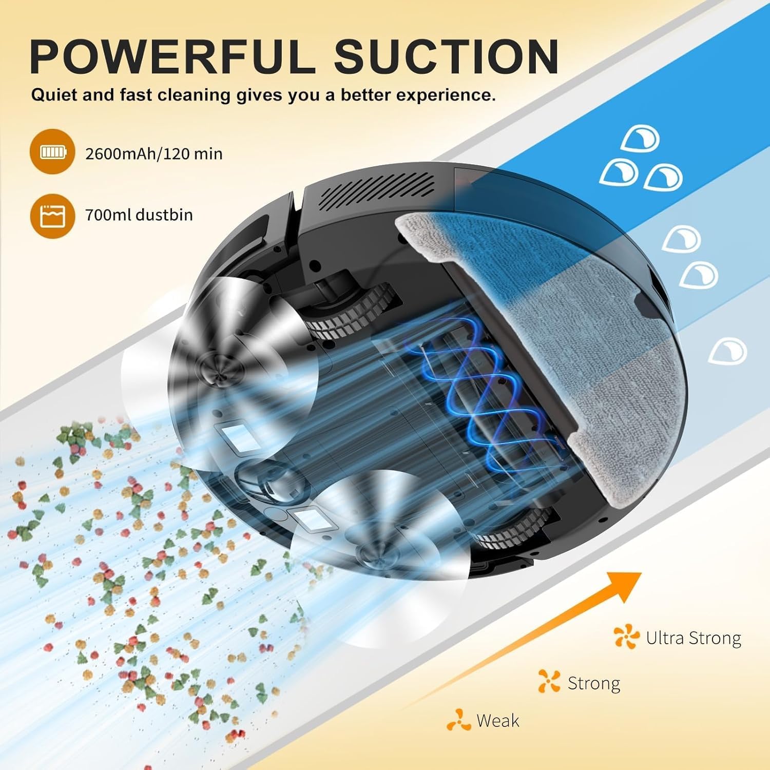 Robot Vacuum and Mop Combo, 2 in 1 Robotic Vacuum Cleaner, 3500 Pa Suction, 120 Min Max, Super Thin, Quiet, App & Remote Control, Ideal for Hard Floor, Hair, Pet Fur, Self-Charge